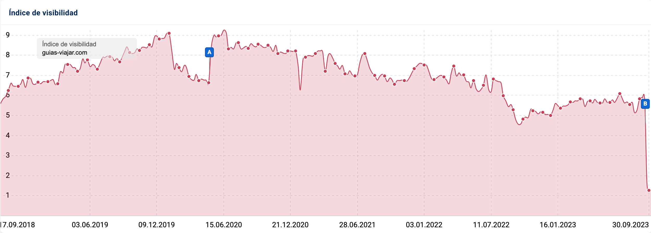 Caída del 78% en visibilidad. Publicidad, contenido justito y sobre todo enlaces de afiliación a mansalva a través de acortadores que así Google no lo sigue. Vaya, sorpresa XD todos estos sites siguen el mismo patrón.