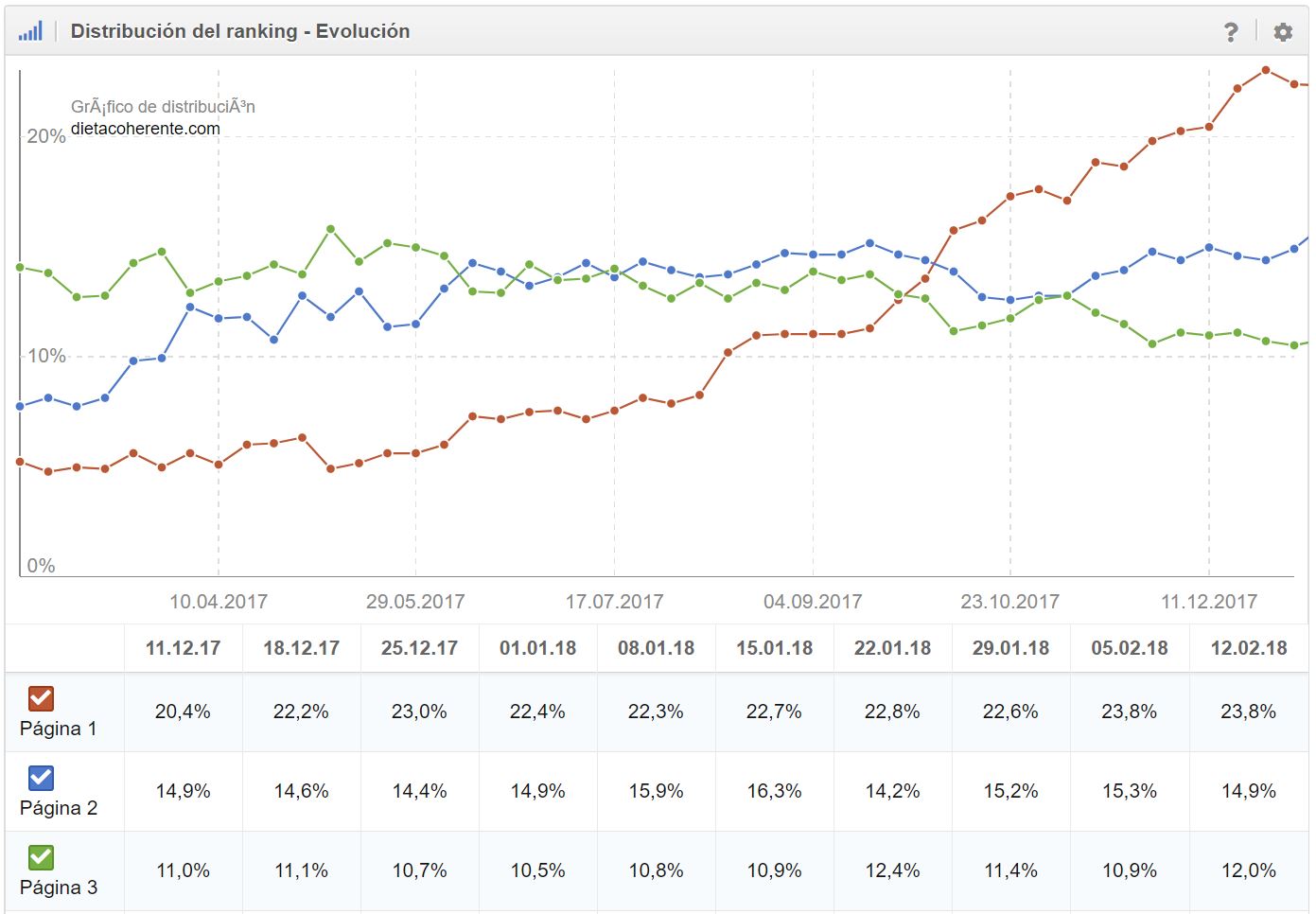 El dominio de dietacoherente.com ha conseguido posicionar 1228 Palabras Clave al Top-20 de Google, de las cuales, 759 ya se posicionan en la primera página del buscador.