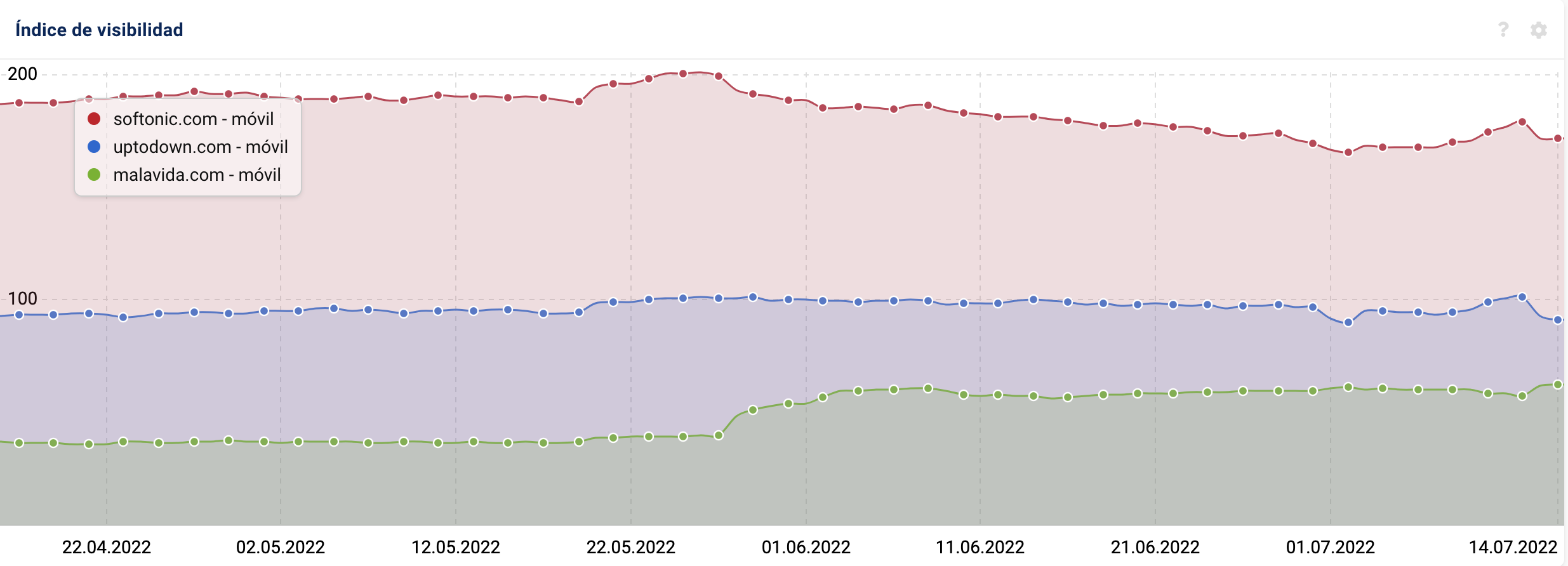Eso mismo pasa con otros proyectos de mucha autoridad como softonic.com o uptodown.com. Proyectos con superequipos SEO detrás que sufren los vaivenes y cambios de criterio de Google, como todos. Fijaros como replican el mismo patrón exacto.