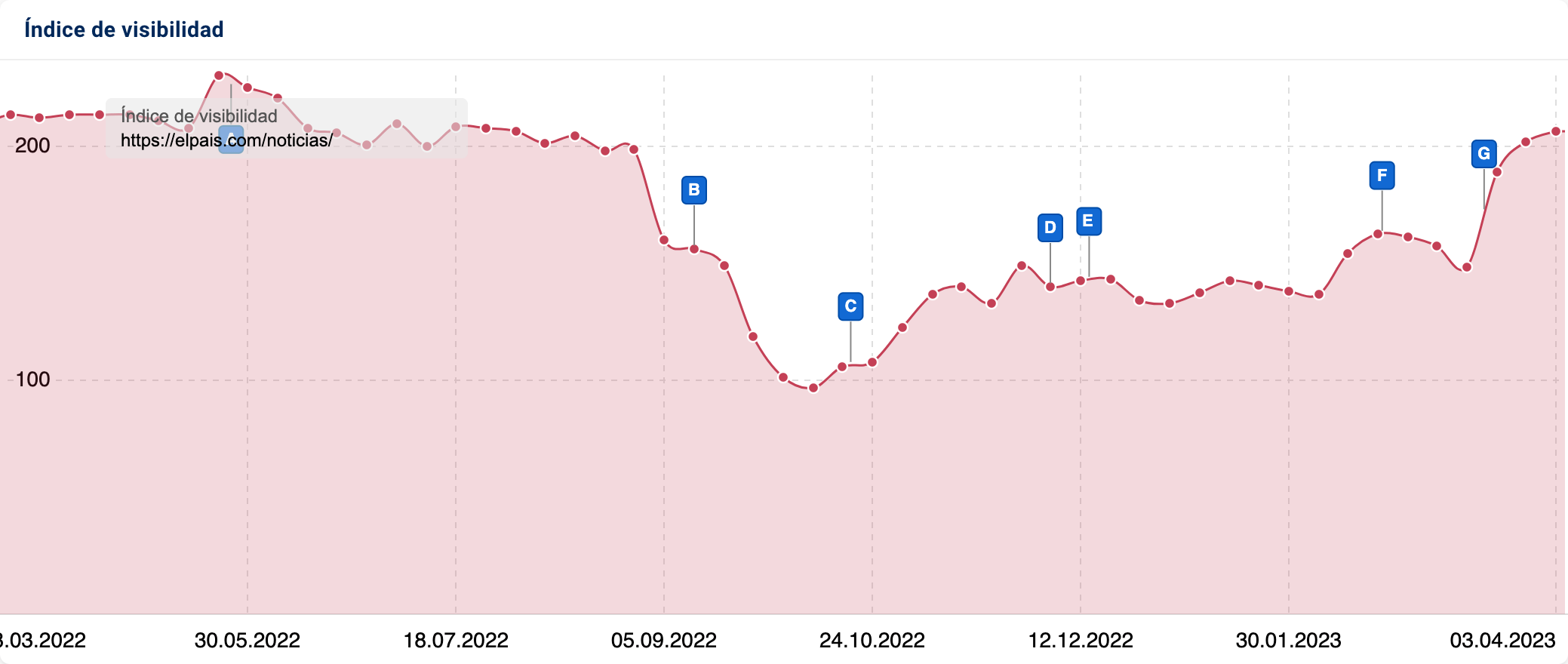 En septiembre 2022 comentaba la afectación importante que tuvieron algunos medios españoles e ingleses en sus secciones de tags. Entre ellos «metro.co.uk» y «elpais.com», estuve hablando con el equipo SEO de El País que trabajaban en recuperar ese tráfico. Pero no parecía darles el resultado esperado. Casi siempre has de esperar a otro Core Update para conseguirlo.