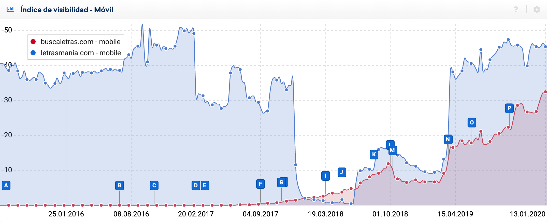 letrasmania.com y buscaletras.com Con el sector de las letras ocurre algo similar. Es una temática en la que Google también ha evolucionado, por ejemplo en lo que refiere a características de SERPs, y en ciertas búsquedas Google ya ofrece respuestas directas de letras . Lo que repercute directamente, por lo tanto, en este tipo de webs.