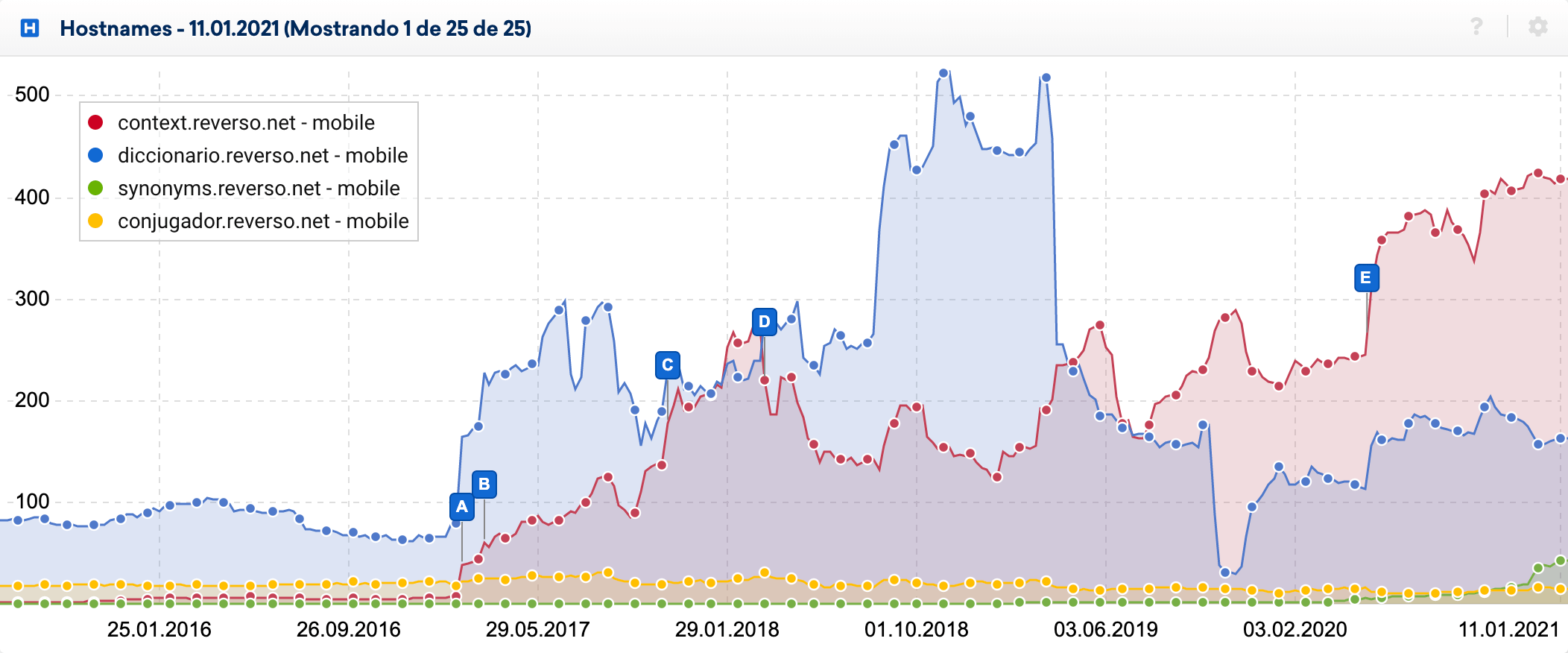 Entre los 30 primeros sitios con mayores crecimientos absolutos de visibilidad, siete de ellos son Diccionarios o Traductores. RAE, Reverso, Pons … y todos de una gran autoridad. ¿Casualidad? Nop :)