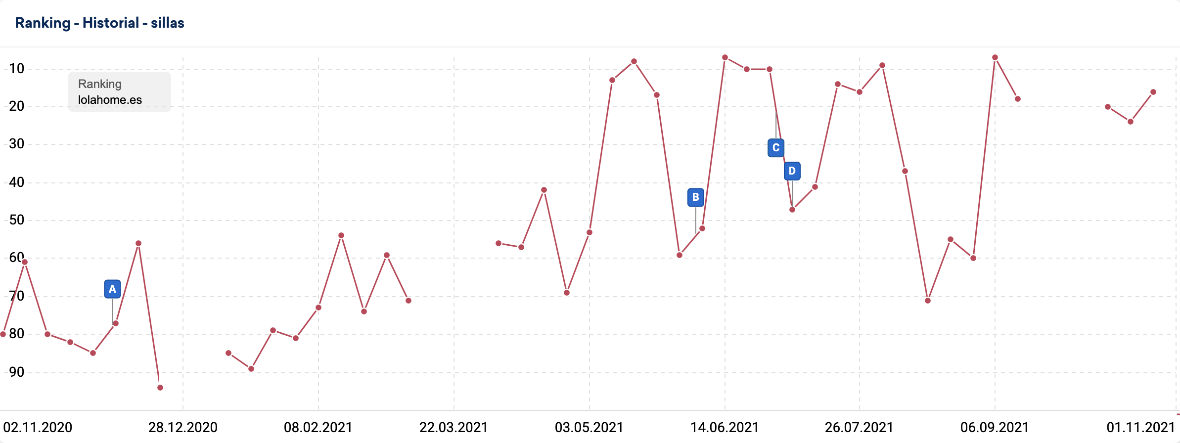 Os pongo el ejemplo de “sillas” para la página web Lola Home. Es “considerado” en cada actualización y descartado poco después. Llegando a sacarlo del top 100.