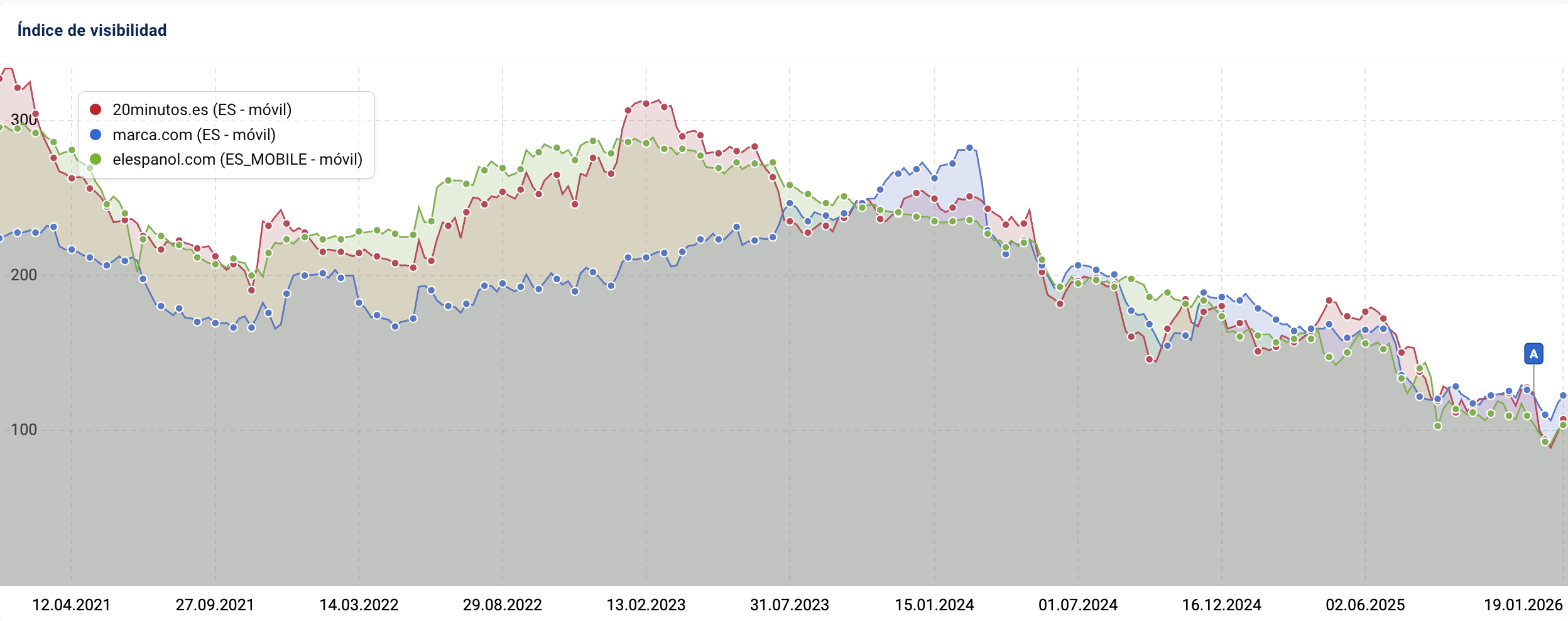Mil Anuncios ha perdido este año -181,82 puntos de visibilidad. Todo ello a partir del Core Update de Junio 2025 y rematado por el de Diciembre.