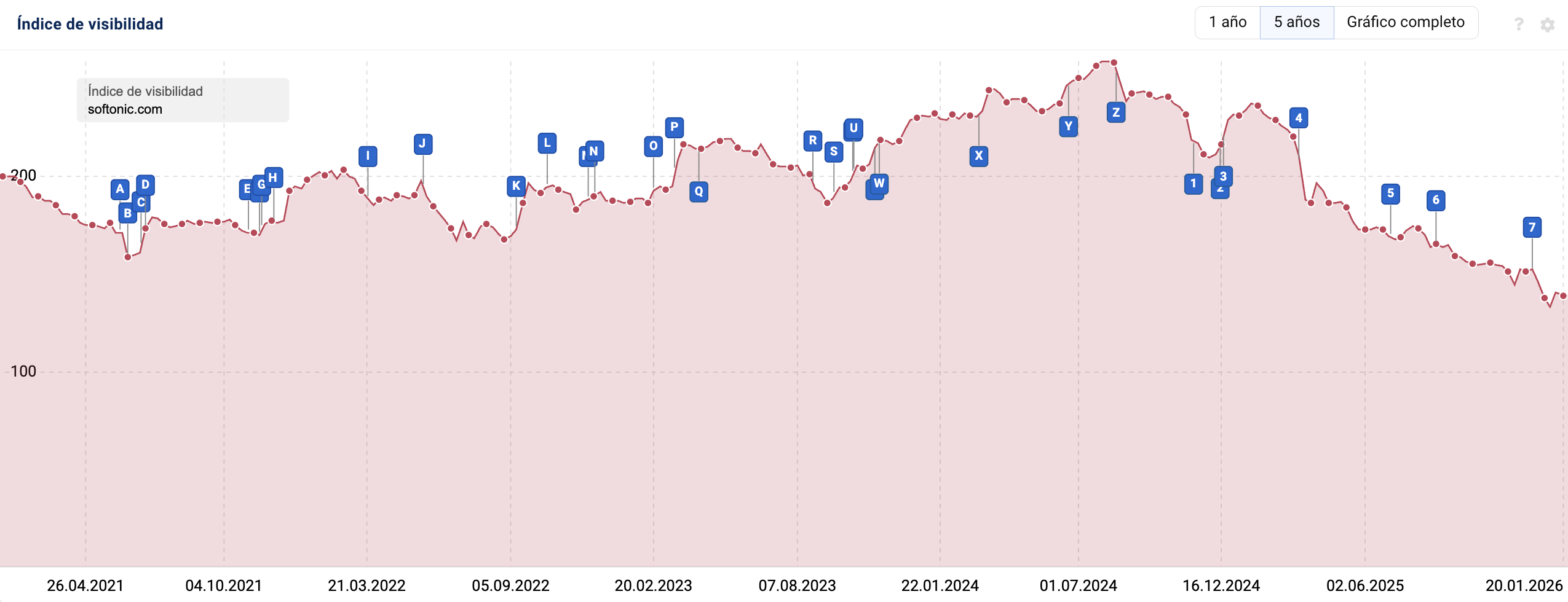 Softonic ha perdido casi -94 puntos de visibilidad este año. Un 40% de su tráfico orgánico en un solo año.
