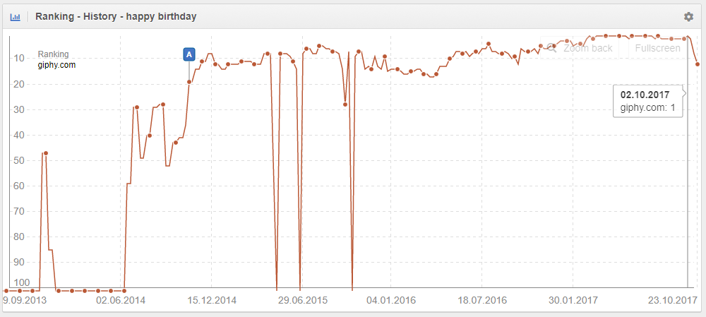 Respecto a Giphy: Si vas por ahí diciendo que eres el buscador número uno para Gifs – y que eres el número uno en Google- , en diferentes medios, yo le echaría un vistazo a este dominio, si yo fuese trabajador de Google. En Google trabajan personas, así de simple.