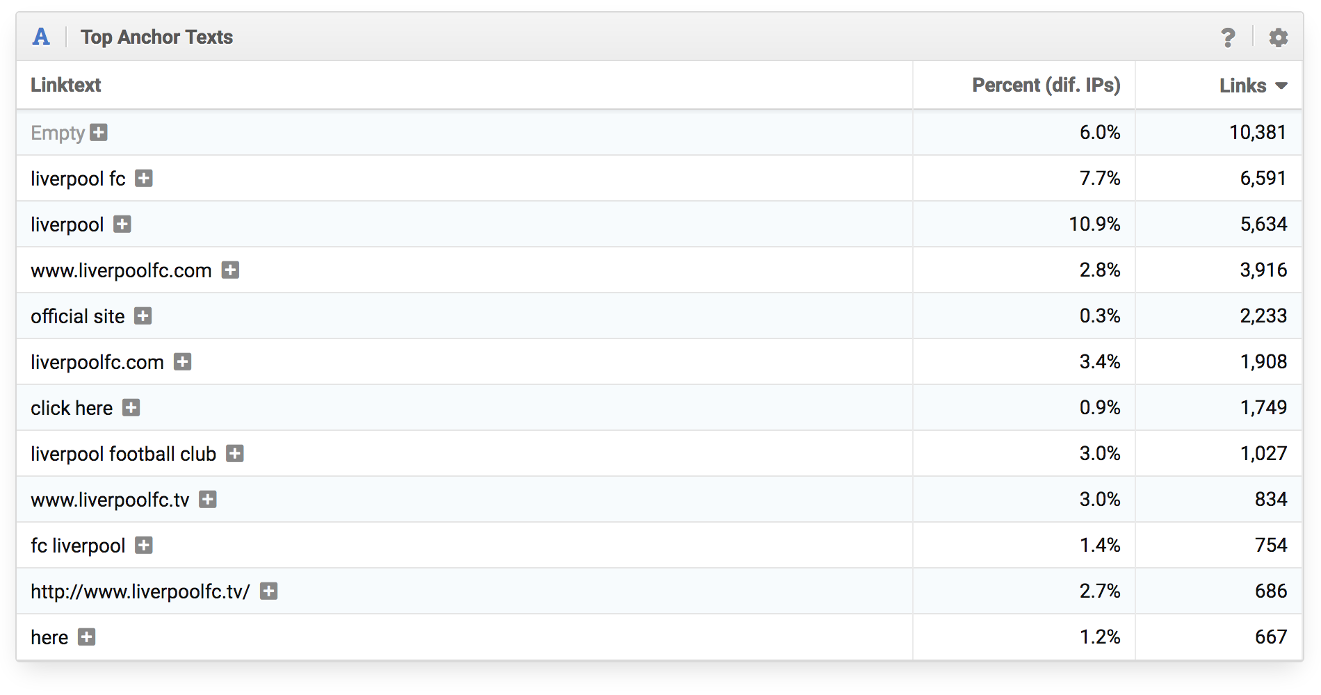 Ahora considera esto. ¿Cómo se ve el texto ancla cuando la gente se está enlazando a ti de una manera natural? La gran mayoría de los usuarios se enlazan a un dominio sin imágenes ni texto (vacío), utilizan la marca, el dominio o simplemente deciden utilizar «aquí» o «haz clic aquí«. Echa un vistazo a los siguientes ejemplos de nuestra base de datos de enlaces.