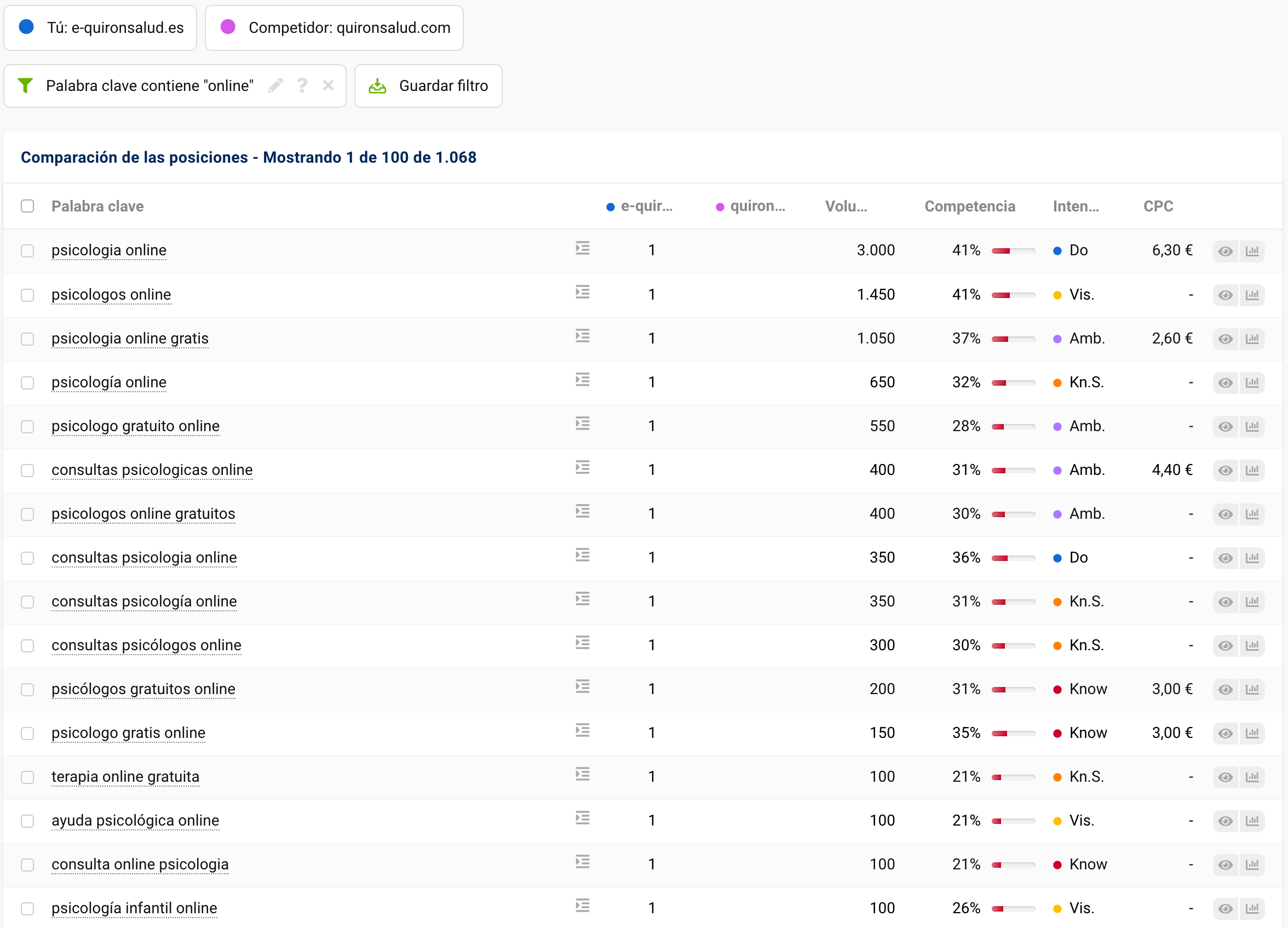 Partimos de tres semillas clave que definen el mercado: «salud mental», «terapia» y «psicólogo».