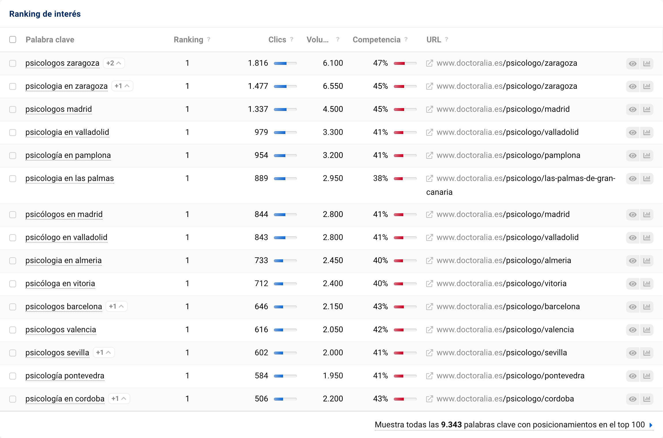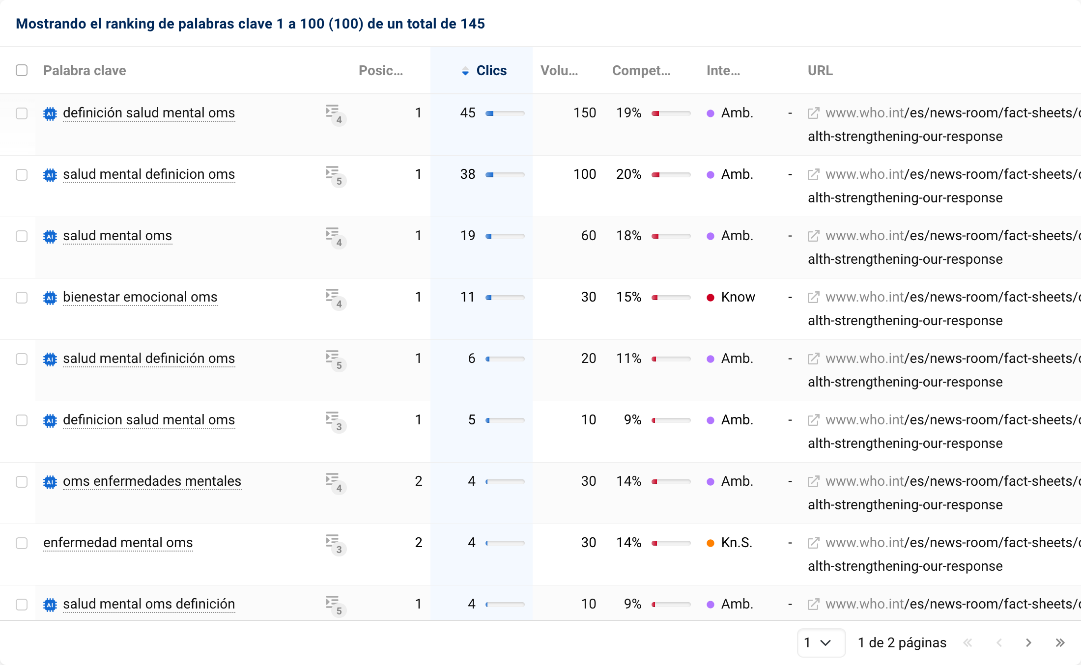 • Ver qué dominios capturan más clics en tu set de palabras clave.