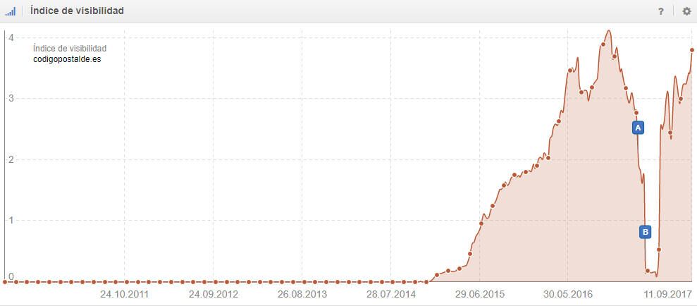 Para ir sin rodeos, me gustaría darte como ejemplo un sitio Web exitoso que ha logrado tener más visibilidad en Google, que los dominios de marcas tan populares como: Eljueves.es, Disneylandparis.es o Generaloptica.es (sólo por citar algunos ejemplos). Se trata de Codigopostalde.es.