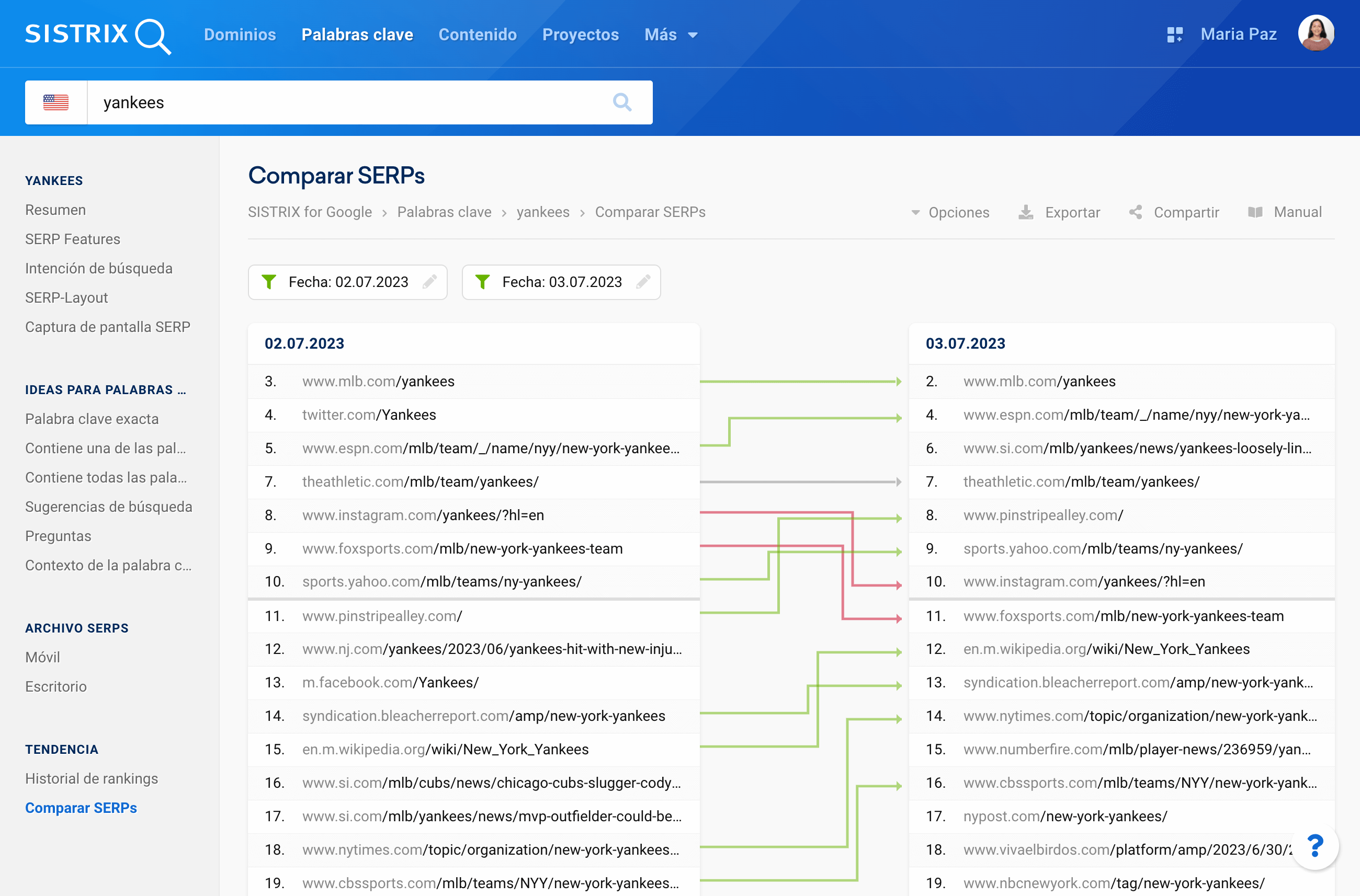 La palabra clave «yankees» tiene un volumen de clics mensual estimado de 1,8 millones en Estados Unidos. La posición 3 perdida valía 168.000 clics al mes y ha sido cedida a «espn.com». Disney y Hearst estarán muy contentos.