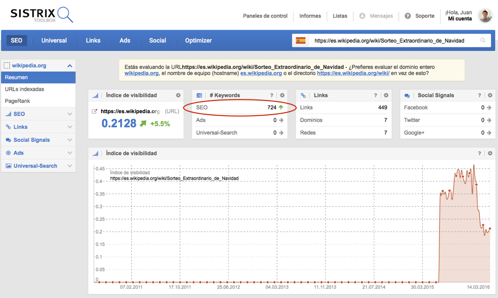 Nuestra herramienta SEO permite el análisis del dominio, del host, de los directorios y de las URLs más importantes en Google. Así, puedes comparar dominios, host, directorios e incluso, URLs tuyas y de la competencia. Esta información es útil tanto para el propietario del sitio Web como para sus competidores.