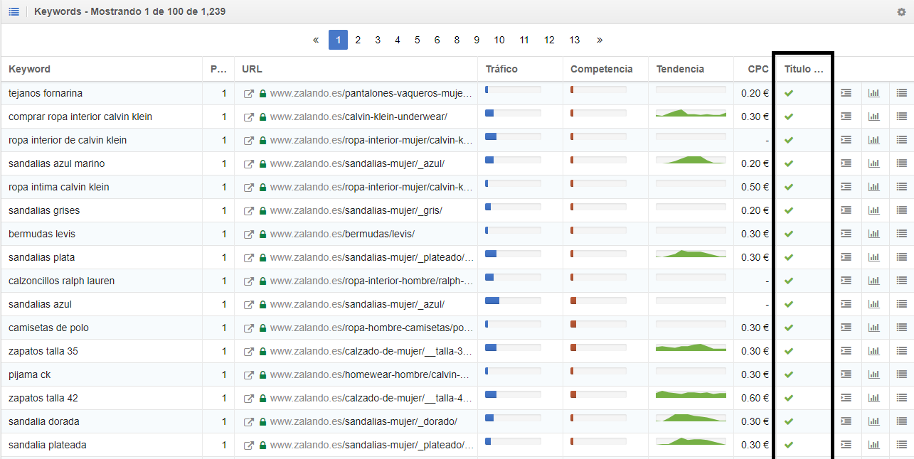 Estas opciones de columna están disponibles como filtros también. Podrás filtrar todos los resultados de búsqueda cuyos textos o títulos se cortan y poner a alguien a trabajar en ello ahora mismo:
