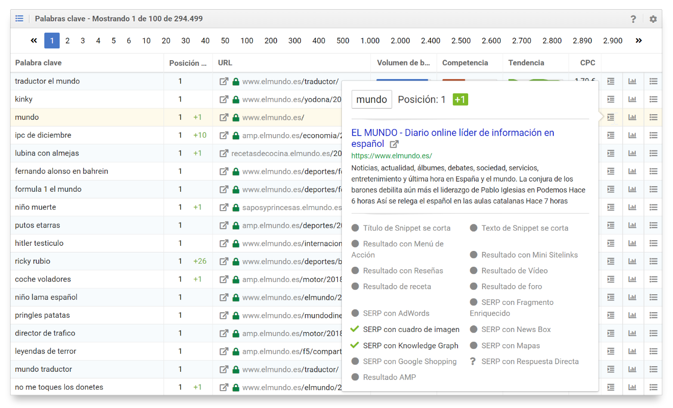 Nuestros datos históricos están disponibles para casi todos los dominios que se han posicionado en el Top 100 en nuestra base de datos de términos de búsqueda, y rara vez encontrarás un dominio que no se haya posicionado por algo a lo largo de su historia.