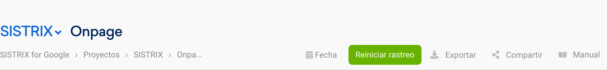 Para poder iniciar el rastreo manualmente, tienes que hacer click en «Reinicar rastreo» dentro del apartado «Onpage», en el proyecto en cuestión.