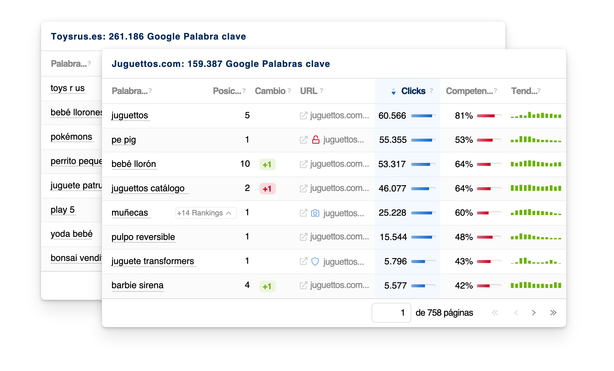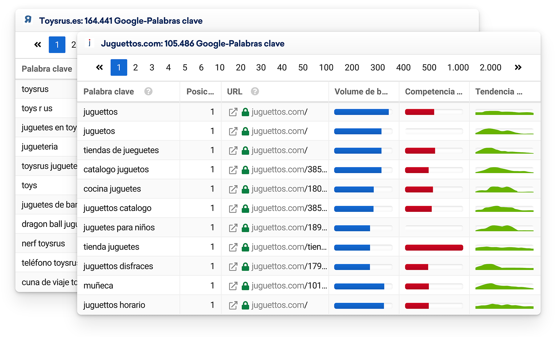 Encuentra miles de ideas de palabras clave, analiza su volumen de búsqueda y tus competidores. Descubre quién lidera en tu nicho de mercado.