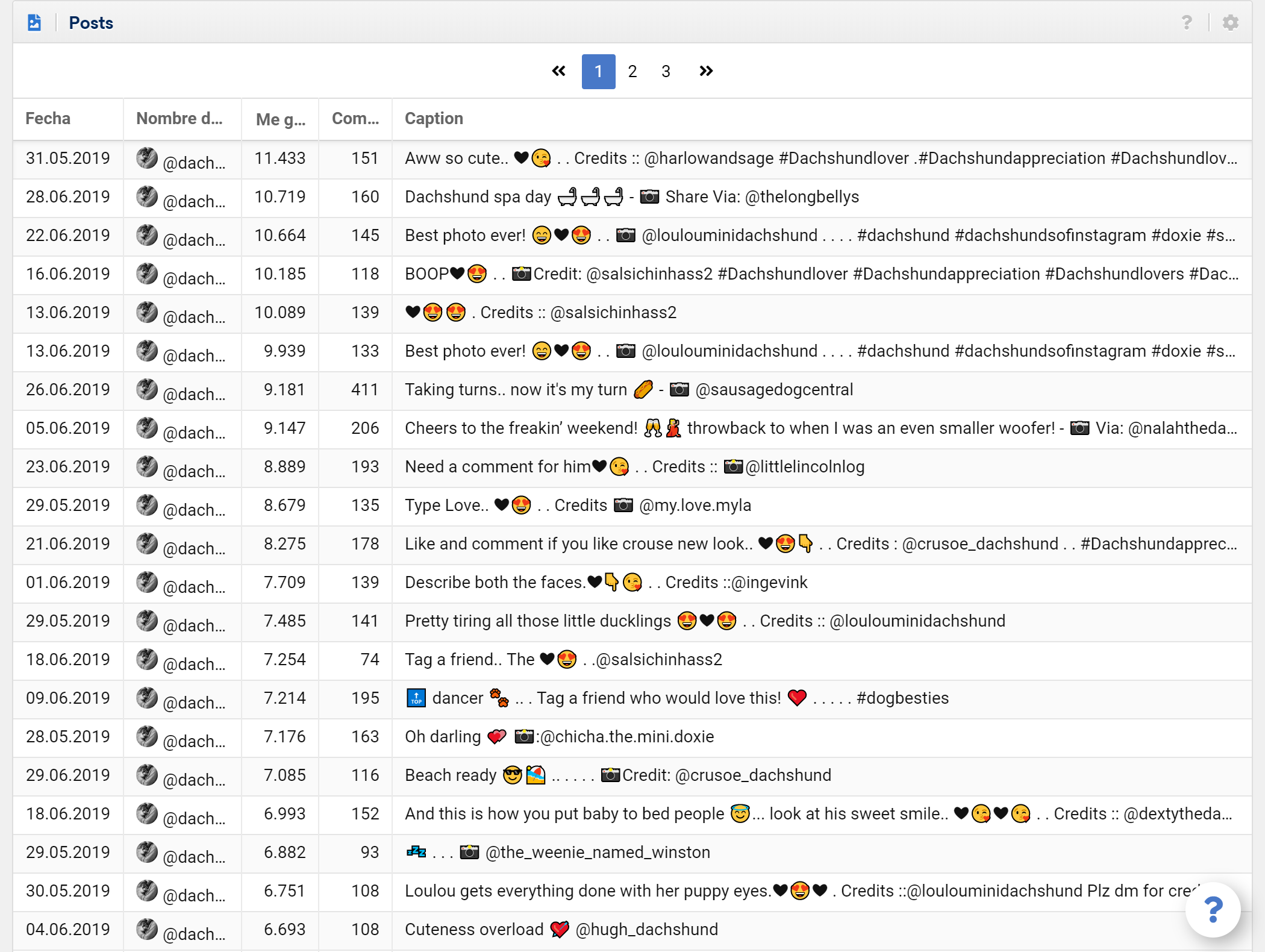 También puedes ver y exportar los mensajes más exitosos de la cuenta (medidos por el número de Likes o comentarios) en una tabla clara: