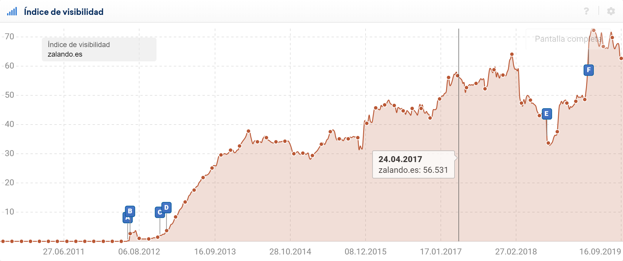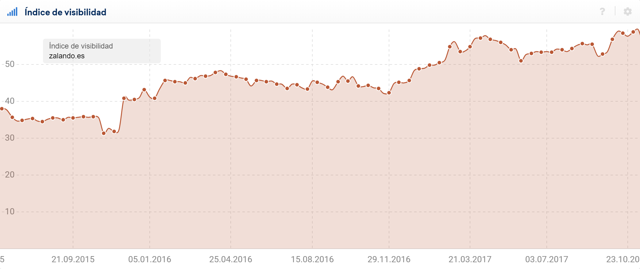 Gráfica del Índice de visibilidad SISTRIX para el dominio zalando.es en google.es