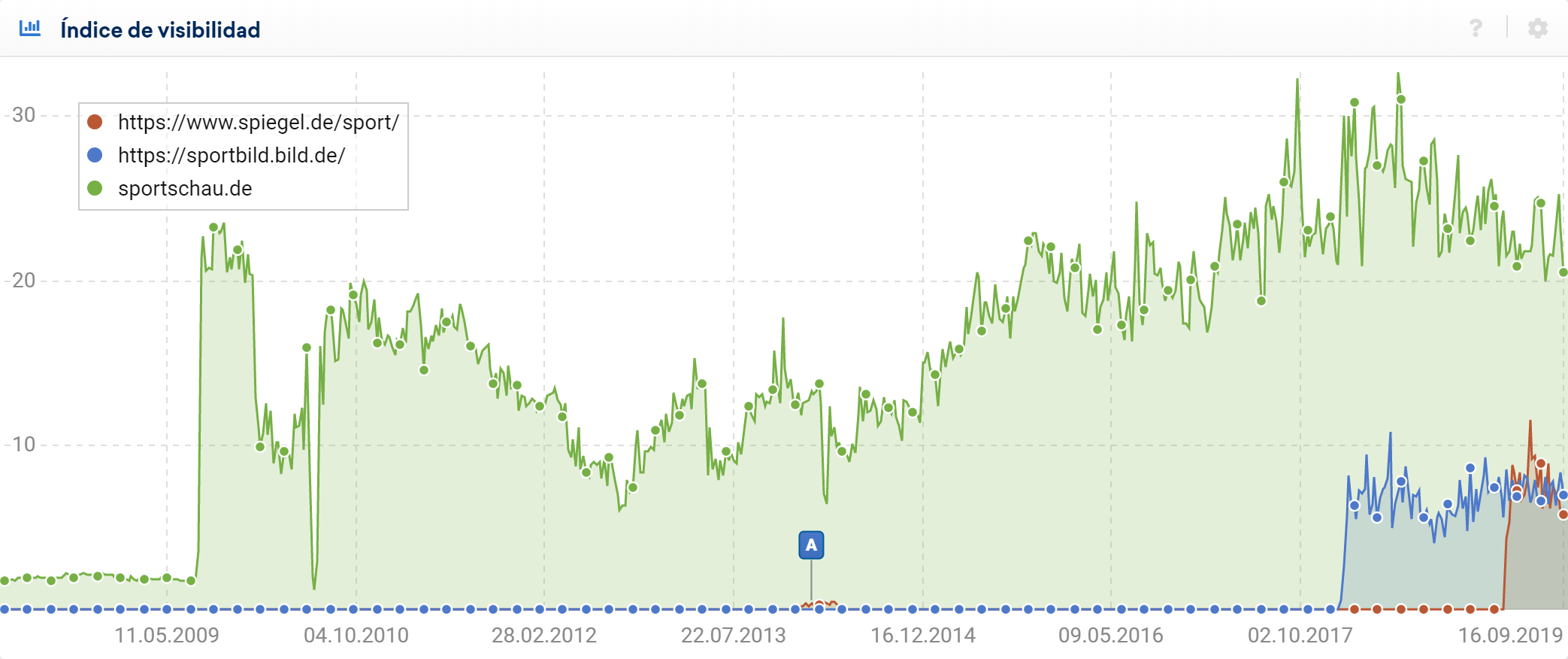 Comparativa de directorios individuales o subdominios entre sí. Por ejemplo, comparar el directorio "Sport" de spiegel.de con el subdominio "Sportbild" de bild.de y todo el dominio sportschau.de.