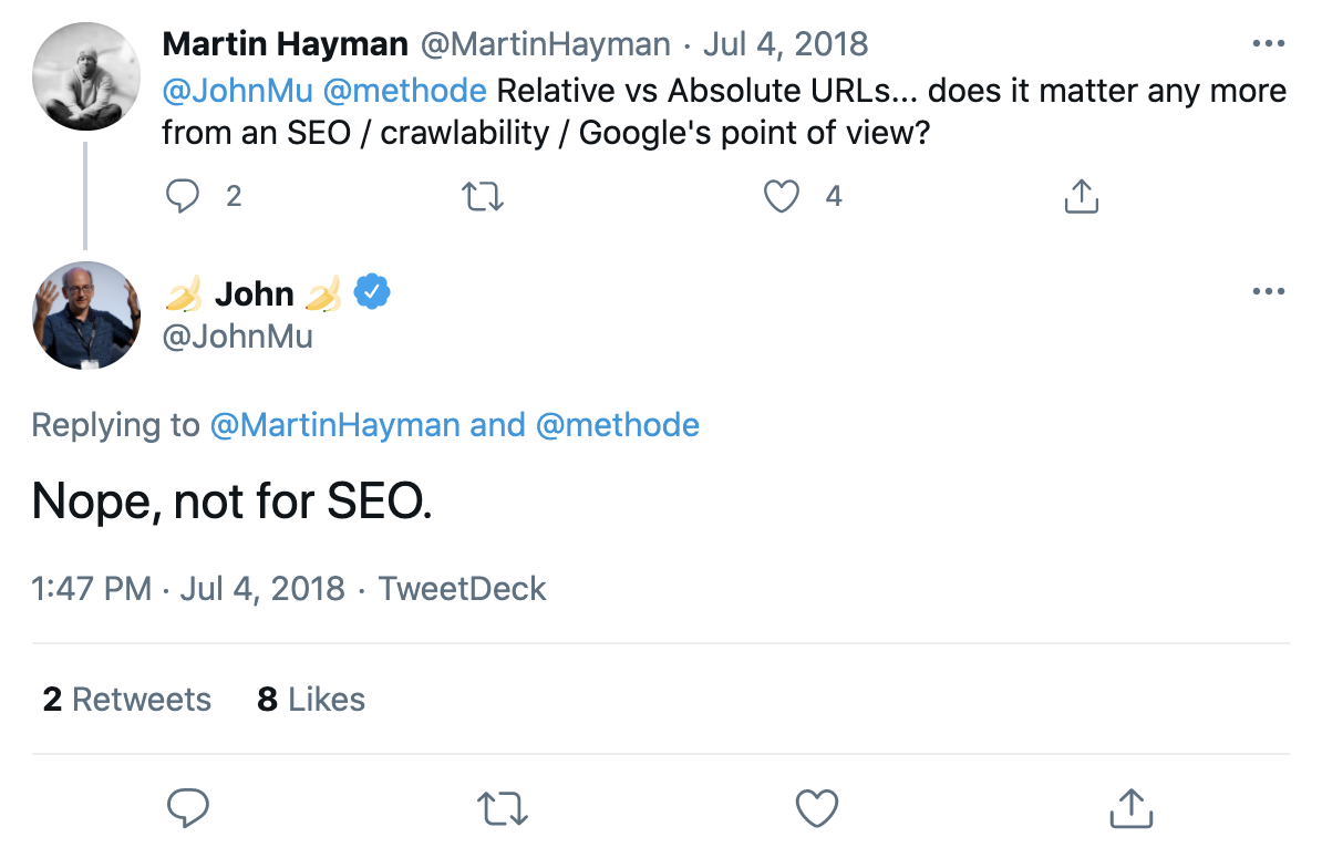Por otro lado, las URLs absolutas tienen ventaja en términos de seguridad, ya que los enlaces relativos conducen rápidamente a contenido duplicado no deseado. Además, facilitan el trabajo de los «scrapers» de contenido.