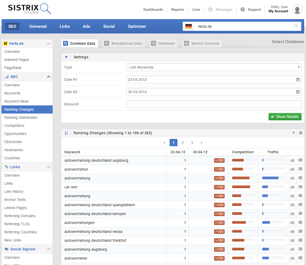 Palabras clave perdidas del dominio Hertz.de para la semana del 30.04.2012