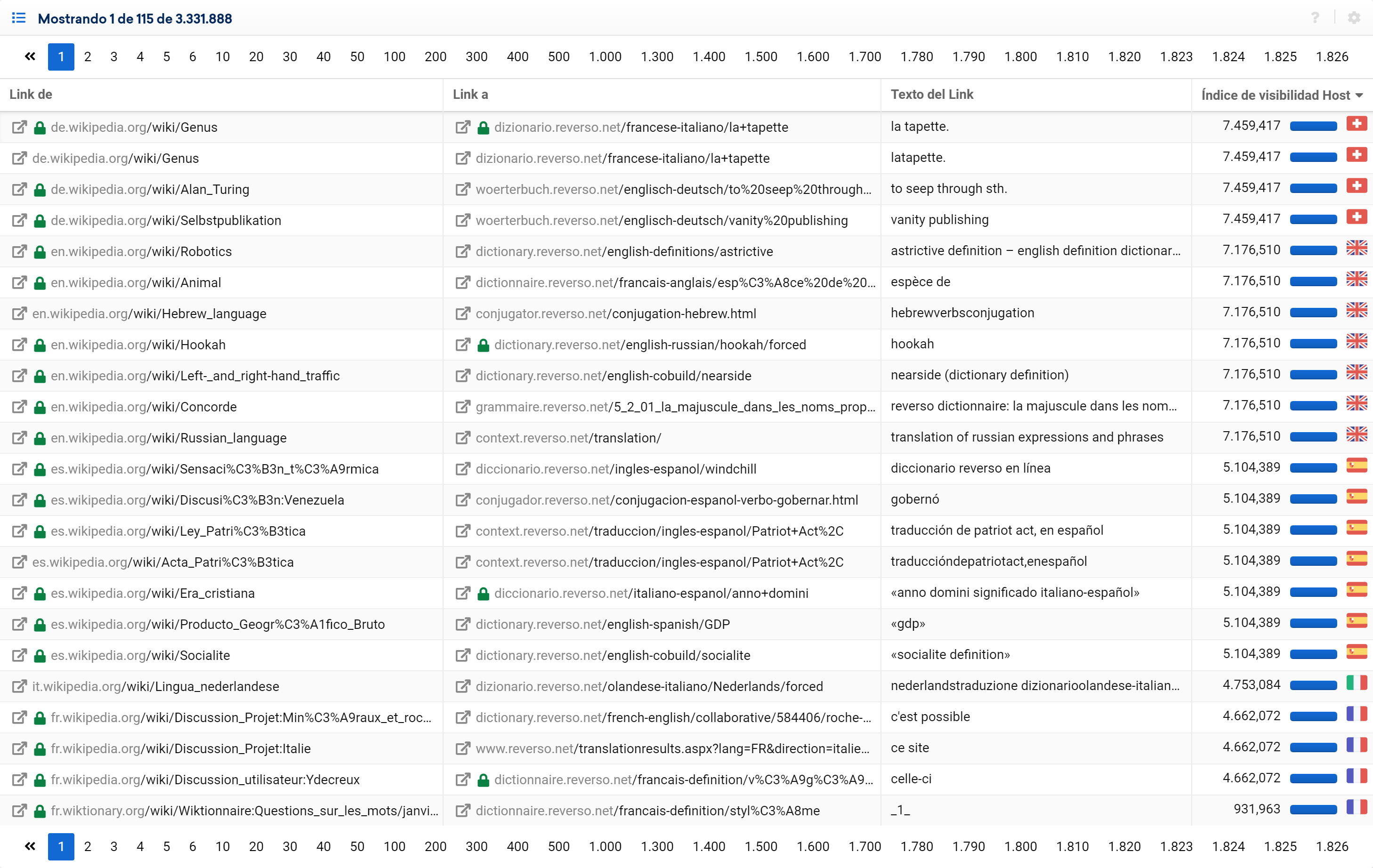 En un análisis detallado se pueden mostrar los backlinks concretos de una URL que pueda dar un vínculo, por ejemplo: www.domain.com/topic-x/, y se pueden evaluar una multitud de métricas de vínculos adicionales.