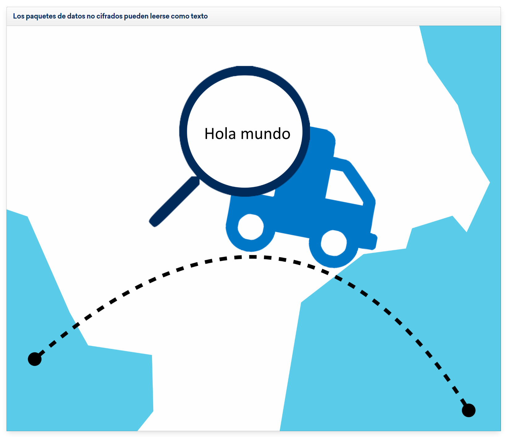 Si un propietario de un sitio web decide enviar el mensaje «Hola mundo» a través de una conexión no encriptada, se podrían interceptar estos datos en el camino desde el navegador al servidor y encontrar la información «Hola mundo» en forma de texto.