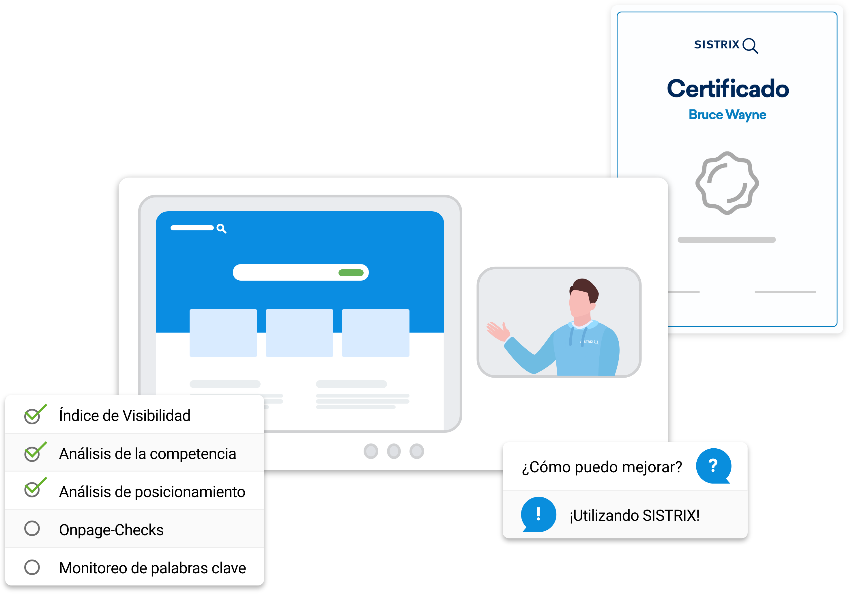 Una vez que domines los fundamentos de SISTRIX, nuestros workshops son el siguiente paso. Intercambia ideas con otros profesionales del SEO en este taller práctico online.