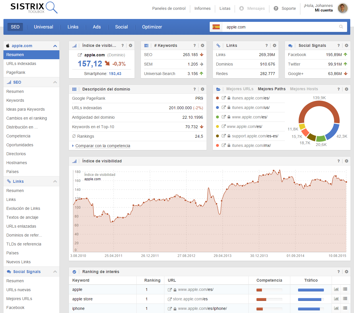 Para poner en contexto tu Índice de Visibilidad lo mejor es compararlo con los valores de tus competidores. En SISTRIX tienes acceso a los datos de más de 100 millones de dominios.