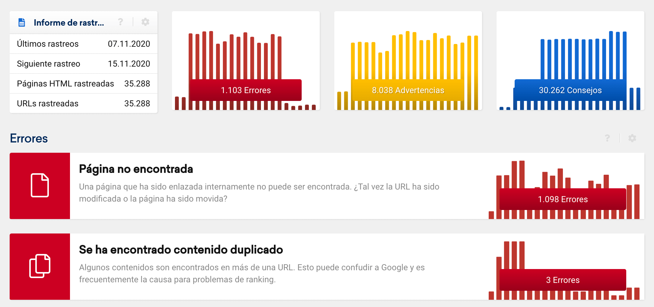 Los defectos técnicos de tu sitio web pueden hacer tu éxito más complicado. En análisis OnPage de Optimizer de SISTRIX identifica y enumera automáticamente todos estos aspectos. Clasificado por importancia, te permite solucionar fácilmente los errores.