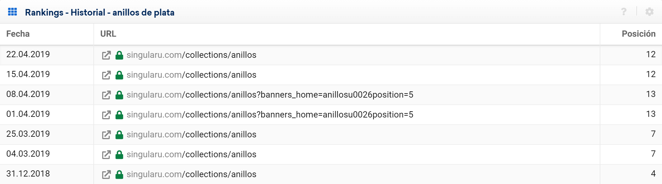 Sin duda en esta tabla ya identificaríamos cómo la gestión de filtros o parámetros está intercediendo en los ranking del directorio de anillos.