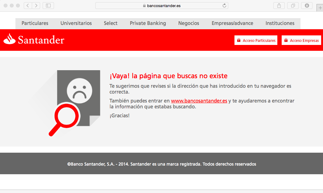 En este caso vemos que nos llevaría a una página de error 404. La URL que solía posicionarse bien para la palabra clave no se redirige a la nueva URL. En cuanto al usuario, el contenido no puede ser encontrado por Google y, en consecuencia, ya no se tiene en cuenta por éste para mostrarla en los SERPs.