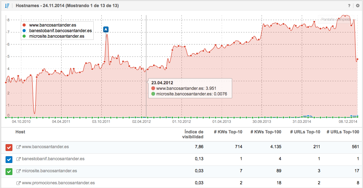 Con este análisis queremos averiguar si la pérdida de visibilidad del dominio se debe a un subdominio concreto o a varios.