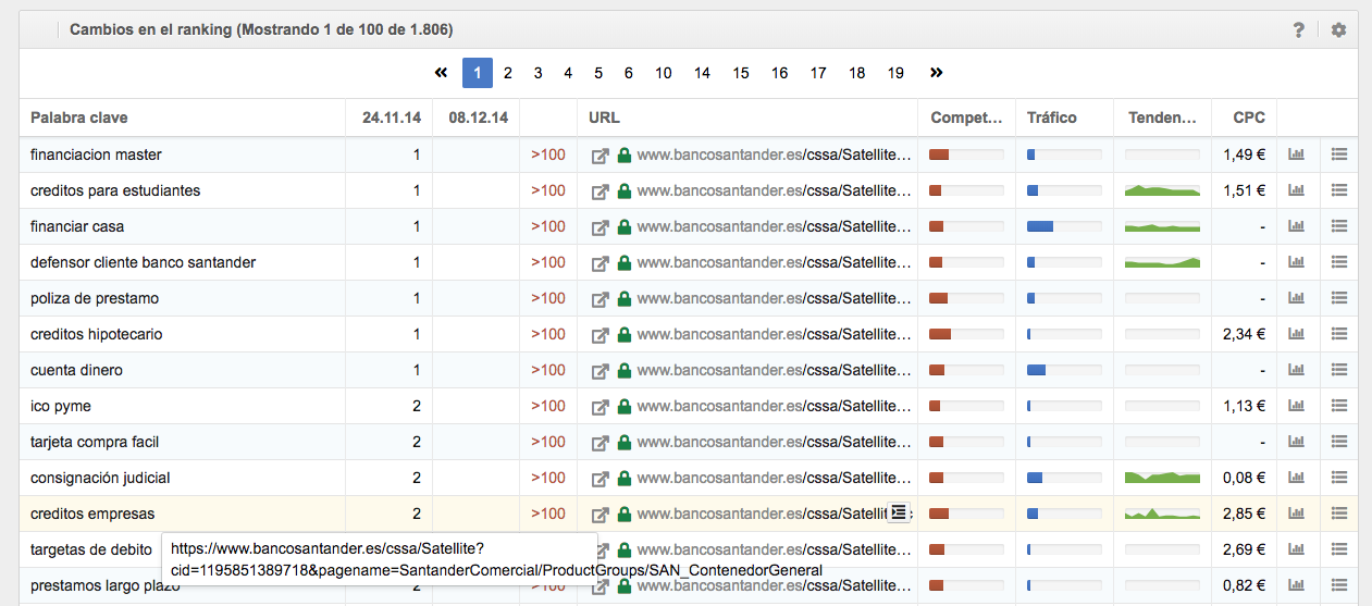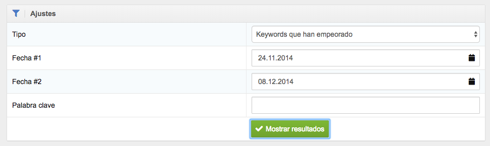 Si tras los pasos de análisis detallados hasta aquí ya puedes descartar que un subdominio o directorio concreto sea el responsable de la pérdida de visibilidad de tu dominio, ahora tienes que identificar las palabras clave que han perdido drásticamente posiciones en el ranking.