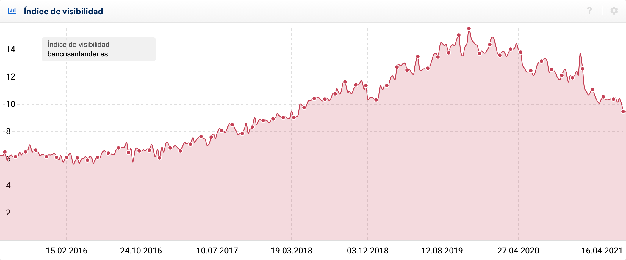 Echemos un vistazo a un dominio que de repente ha perdido una gran cantidad de visibilidad. Lo interesante es que con SISTRIX no solo puedes analizar la pérdida de posicionamiento actual de un dominio, sino que también puedes ver los cambios en el pasado. Nuestro ejemplo es del 2021.