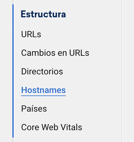 Si observas un fuerte cambio en la evolución del Índice de Visibilidad de un dominio, selecciona el apartado «Hostnames» en 1 del menú vertical de la izquierda en tu cuenta SISTRIX.