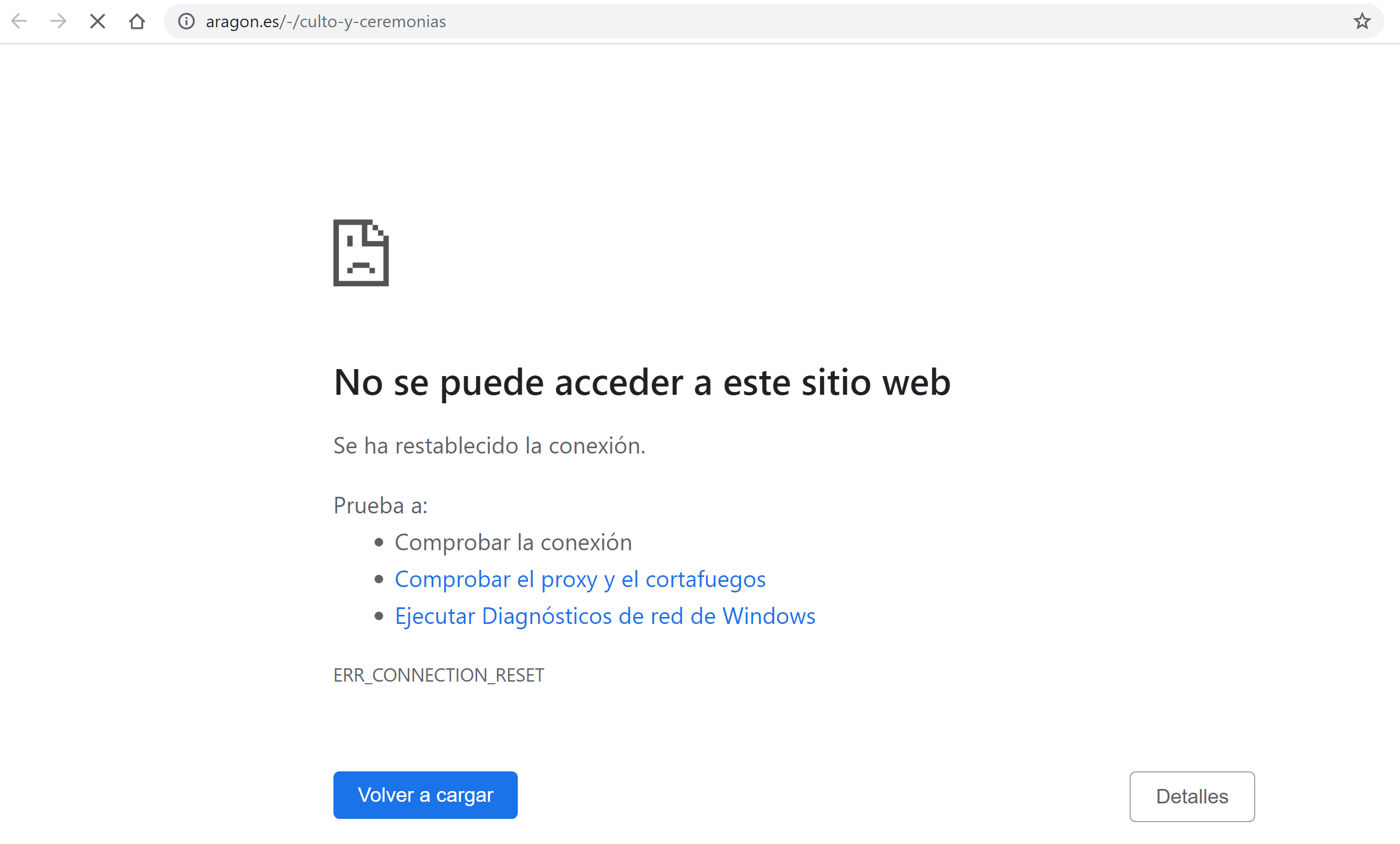 En nuestro ejemplo vemos que todos los directorios relevantes para el dominio «aragon.es» han perdido visibilidad.