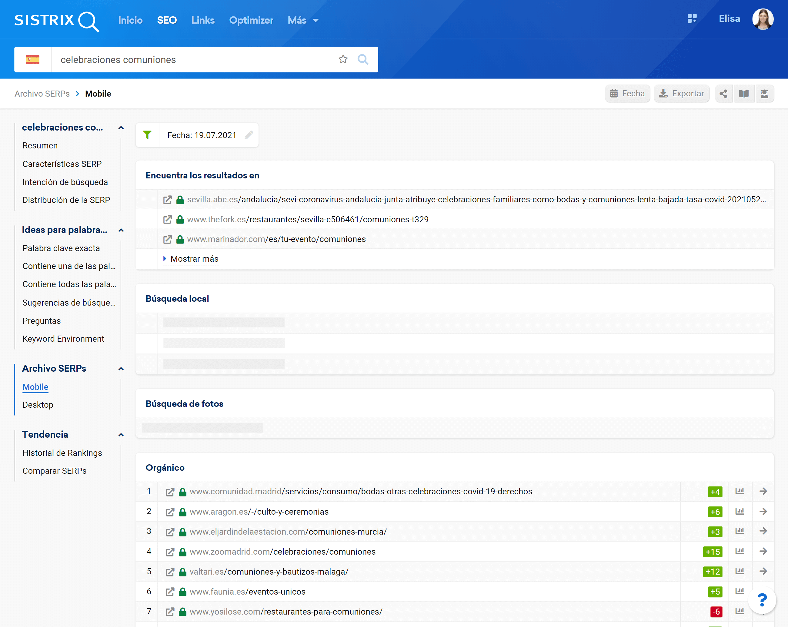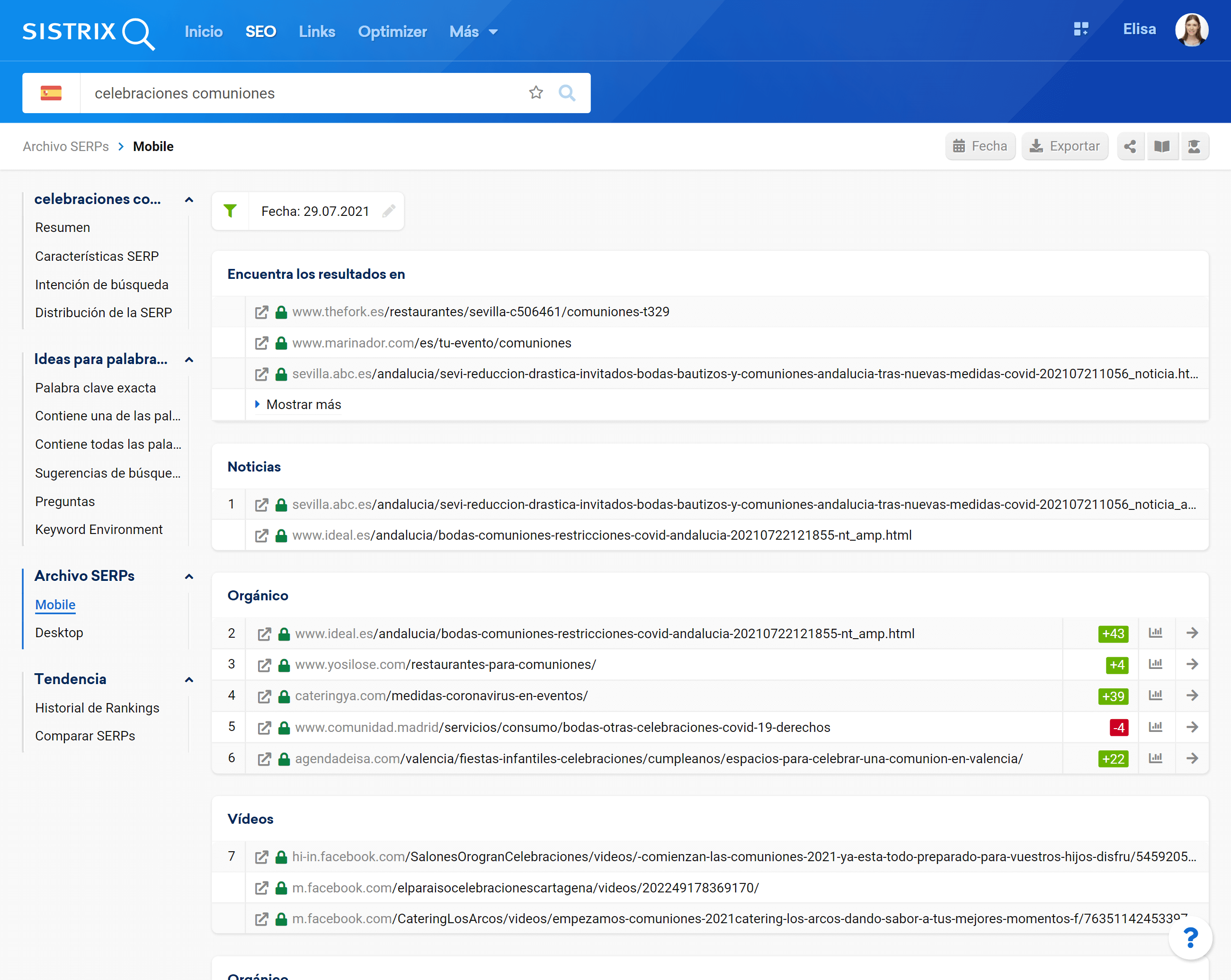 - Comprobar las URLs que posicionaban las palabras clave en el archivo de las SERPs de SISTRIX