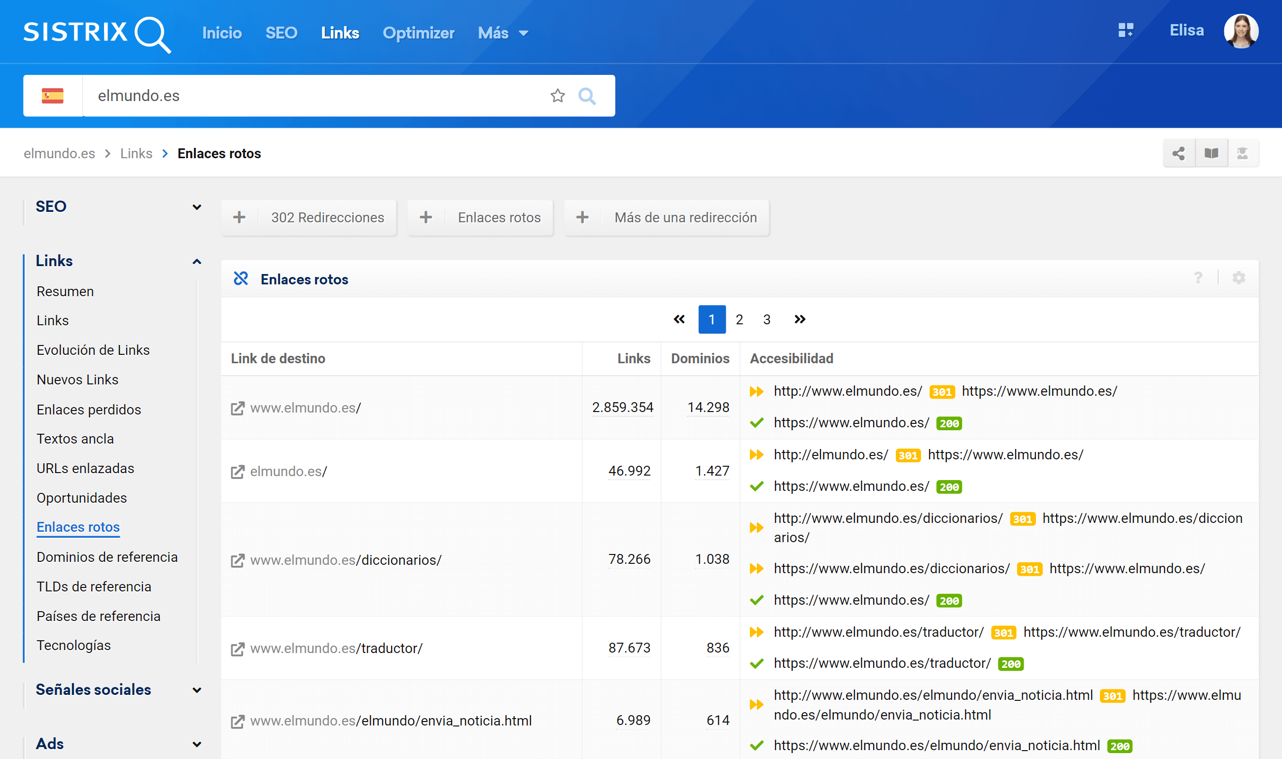 Otro paso puede ser la «construcción de enlaces rotos«. Dado que tu competidor puede no estar haciendo su tarea correctamente con los redireccionamientos, consulta su perfil de backlinks con «Enlaces rotos» para ver qué sitios web de terceros se muestran, apuntan a su contenido y no están disponibles. Una vez hecho, te pondrás en contacto con el administrador del sitio del enlace, háblale amablemente y sugiérele que cambie el enlace roto en lugar de señalar su propio contenido en el sitio web defectuoso de tu competidor. Te explicamos cómo lo puedes hacer con SISTRIX en el siguiente tutorial.