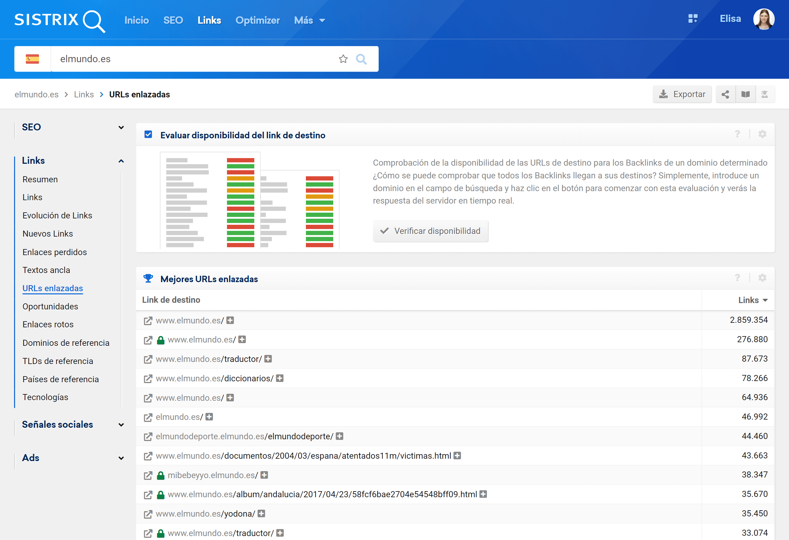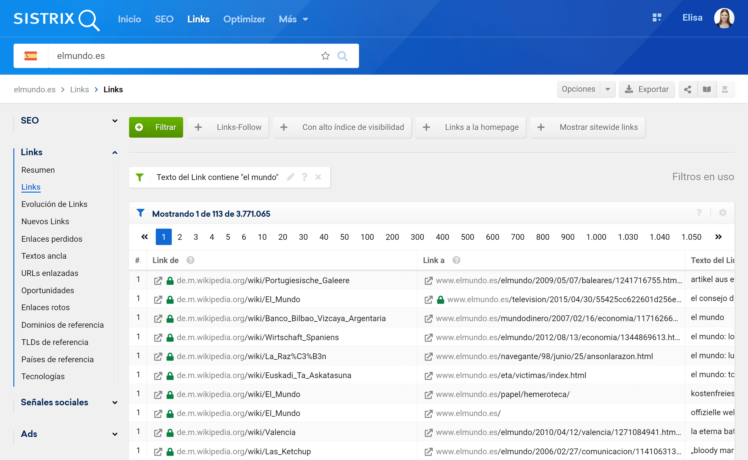 ¿Cómo encontrar las fuentes relevantes de backlinks en SISTRIX?