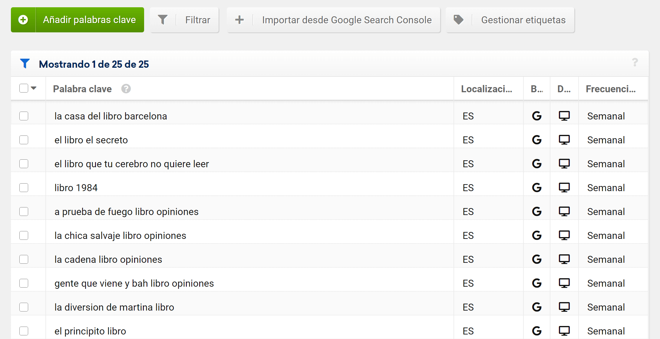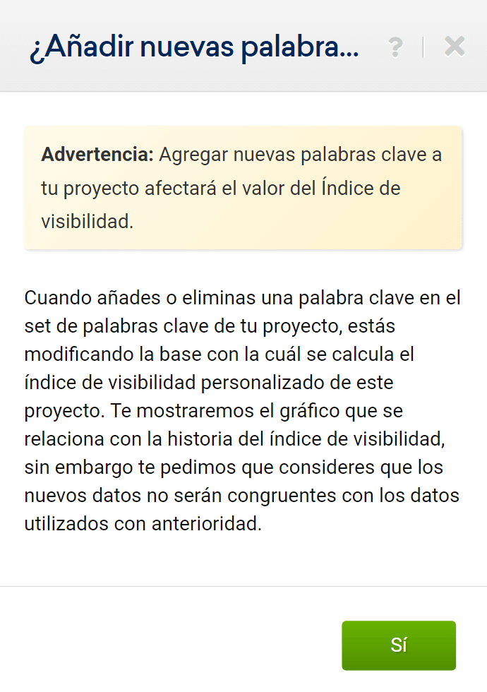 Cuanto mejor sea tu conjunto de palabras clave, más significativo será posteriormente el Índice de Visibilidad de tu proyecto. Un keyword research minucioso al principio dará sus frutos al final.