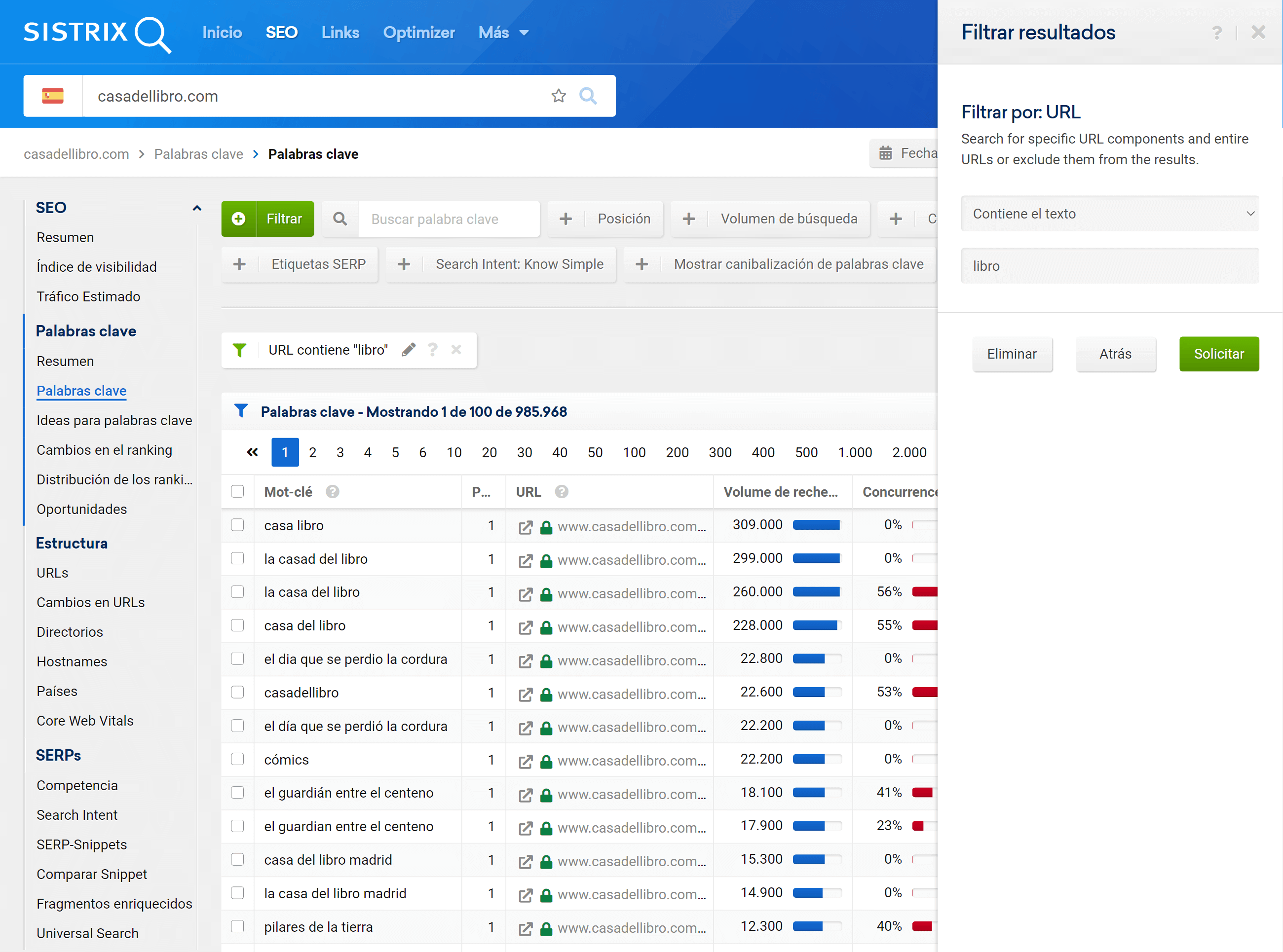 Por lo tanto, debes detectar rápidamente los cambios de posicionamiento, en todos los niveles de tu sitio web. SISTRIX te permite obtener información indispensable de manera oportuna y fiable.