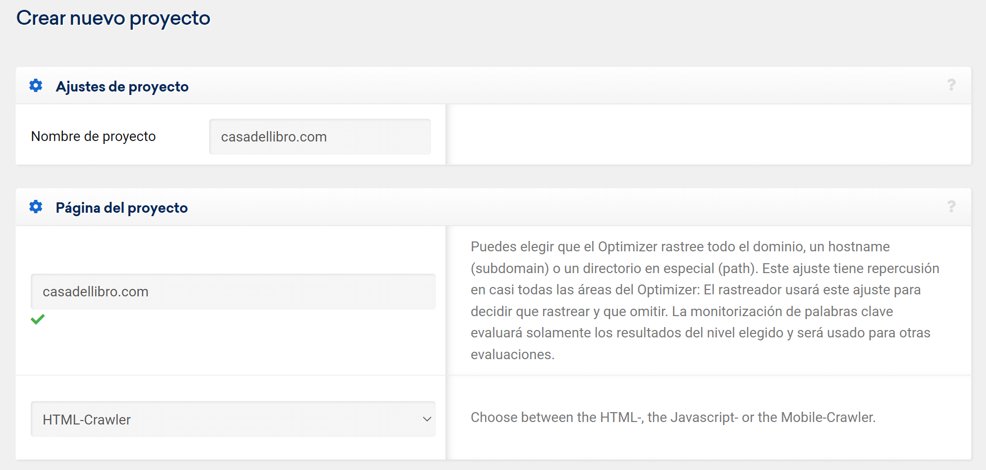 Si ya has creado tu conjunto de palabras clave, ahora puedes empezar a crear un proyecto Onpage en SISTRIX.