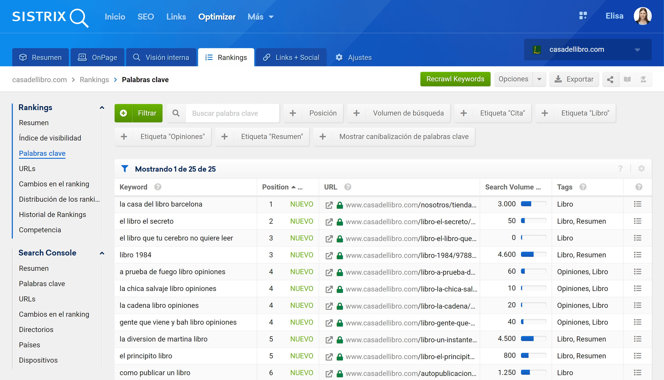 - Establece una actualización diaria de las palabras clave, aunque hasta ahora SISTRIX ya las actualizaba mensualmente.