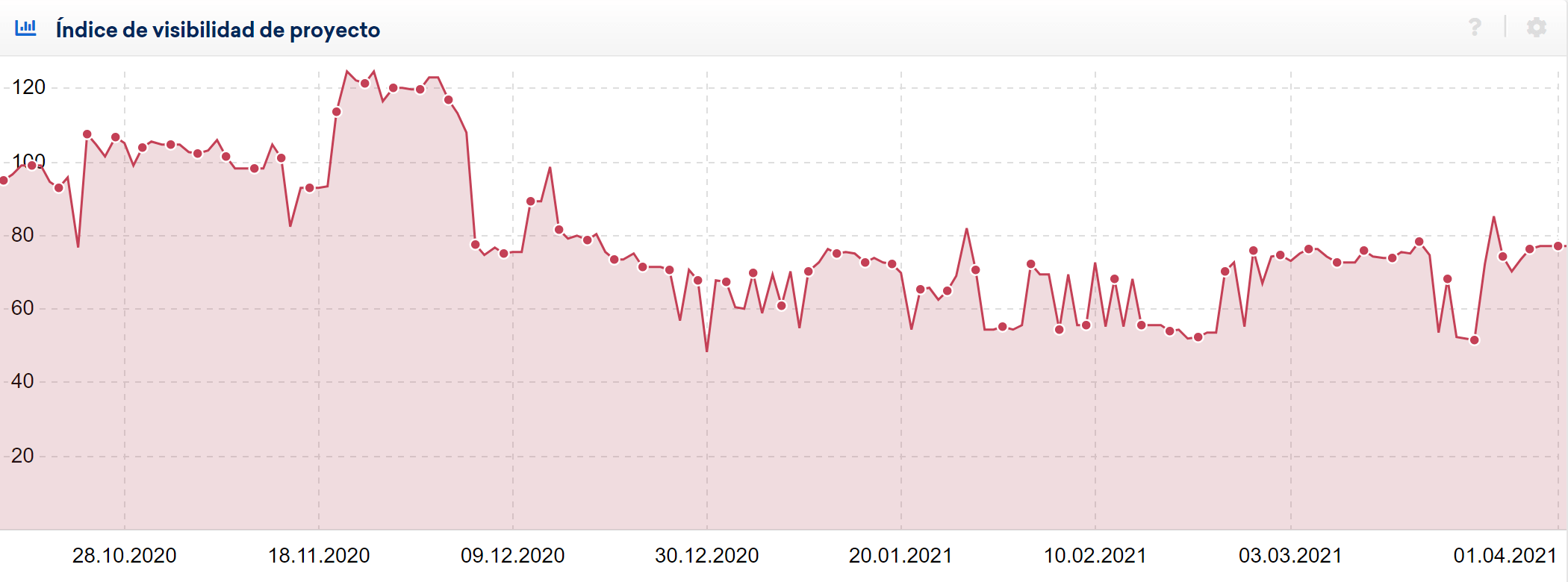 Por defecto, cada semana se añade un nuevo punto de medición al Índice de Visibilidad (también lo puedes configurar con una frecuencia de rastreo diario). De esta forma, al cabo de unos días o semanas, dependiendo de tu configuración, ya puedes ver una primera tendencia de los movimientos de tus palabras clave.
