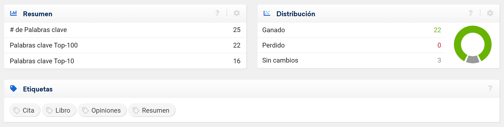 Por ejemplo, si has creado una tienda online y añadido todas las categorías de tu tienda o fabricantes como etiquetas al crear el proyecto y ya tienes definido tu conjunto de palabras clave, puedes ver aquí si determinadas categorías de la tienda online han ganado o perdido posiciones.