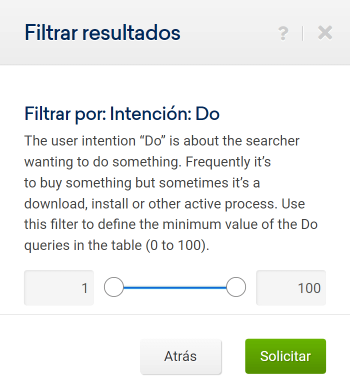 Con el control deslizante puedes fijar el valor correspondiente de la intención de búsqueda. En otras palabras, cuanto fuerte es la intención «Do».