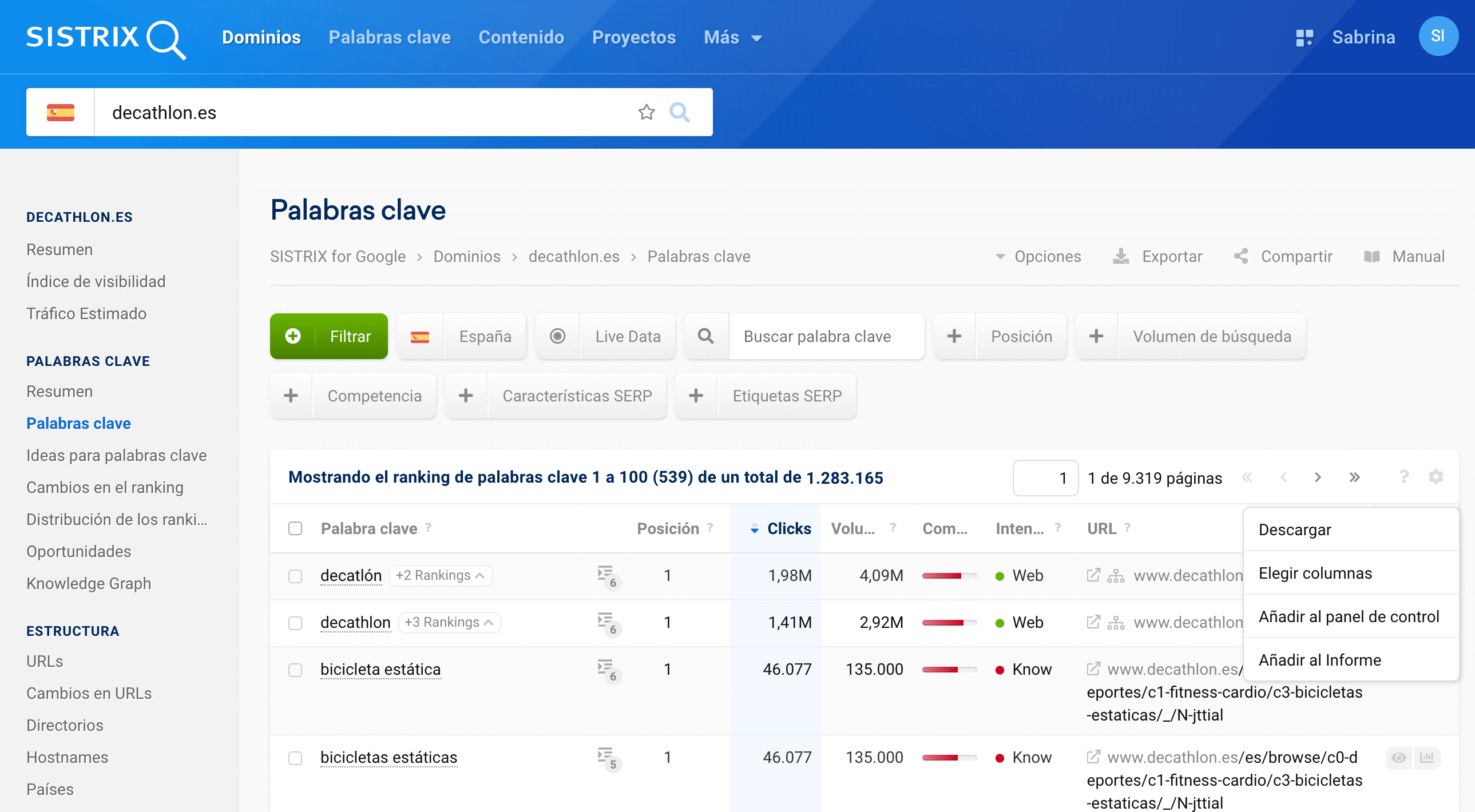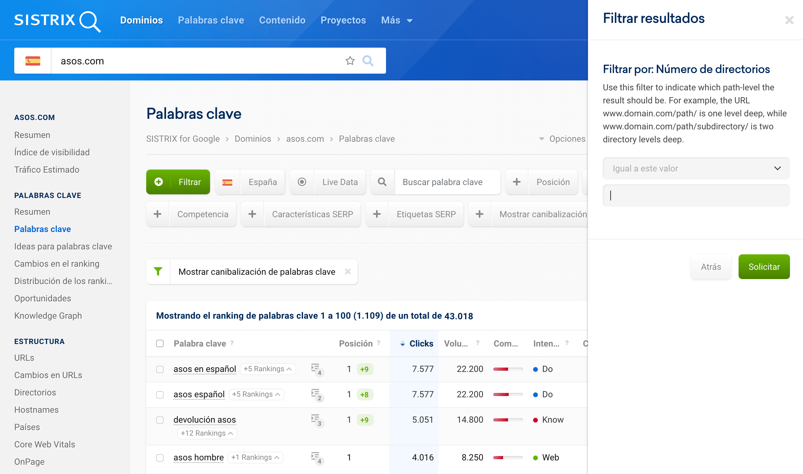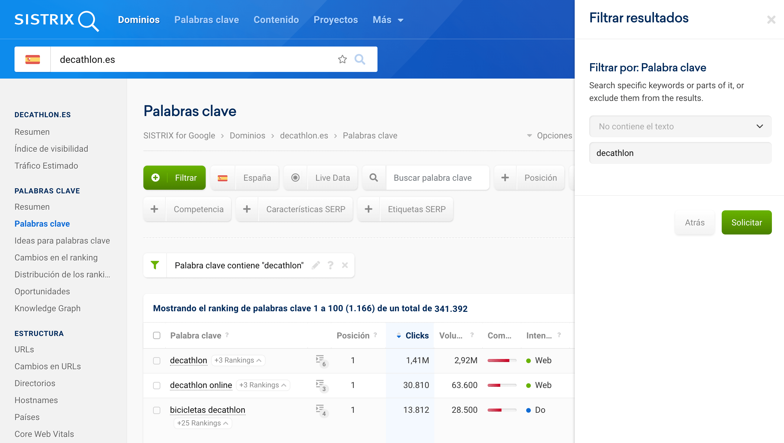 En otro artículo encontrarás toda la información sobre qué países y cuántas palabras clave cubre SISTRIX.