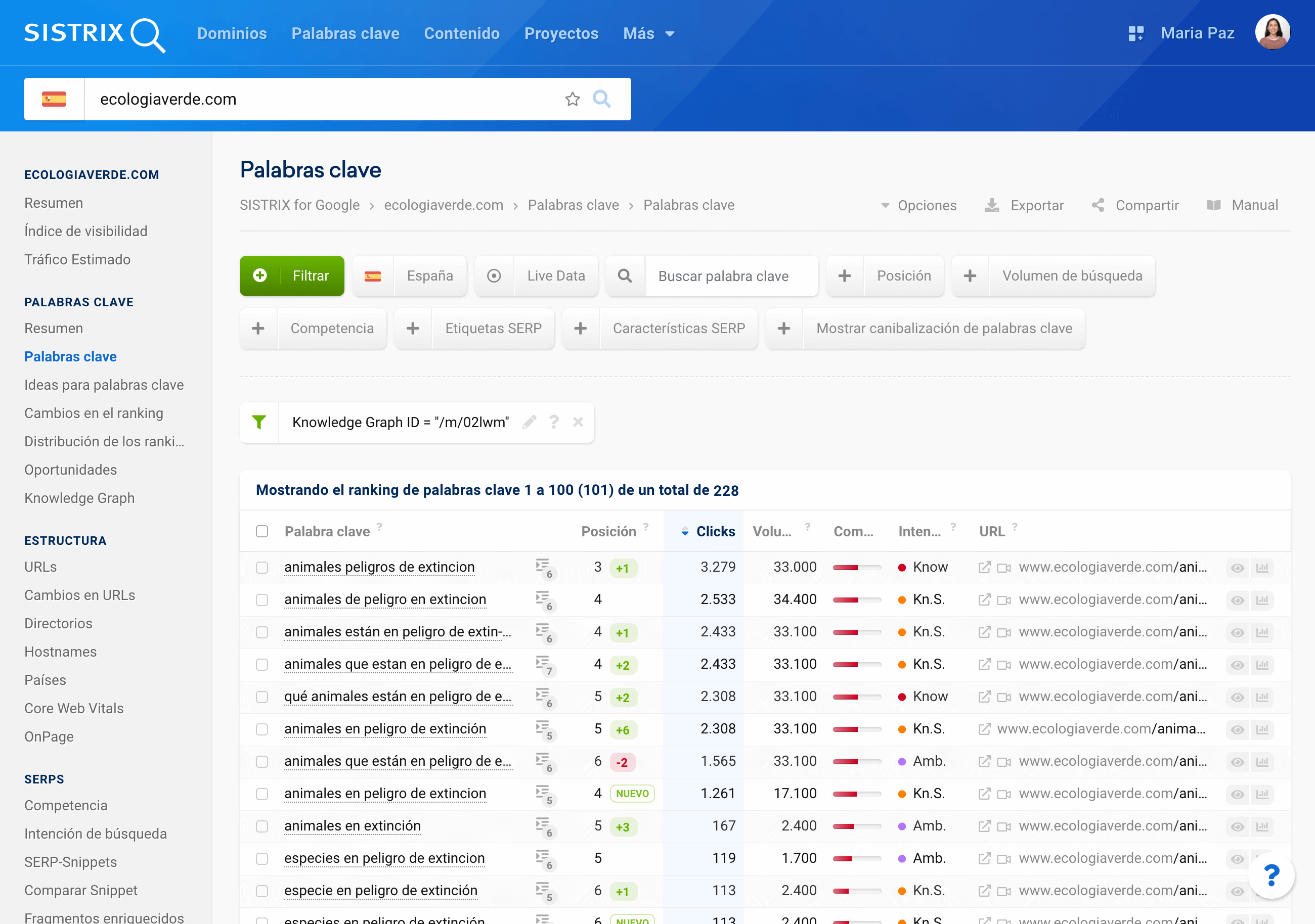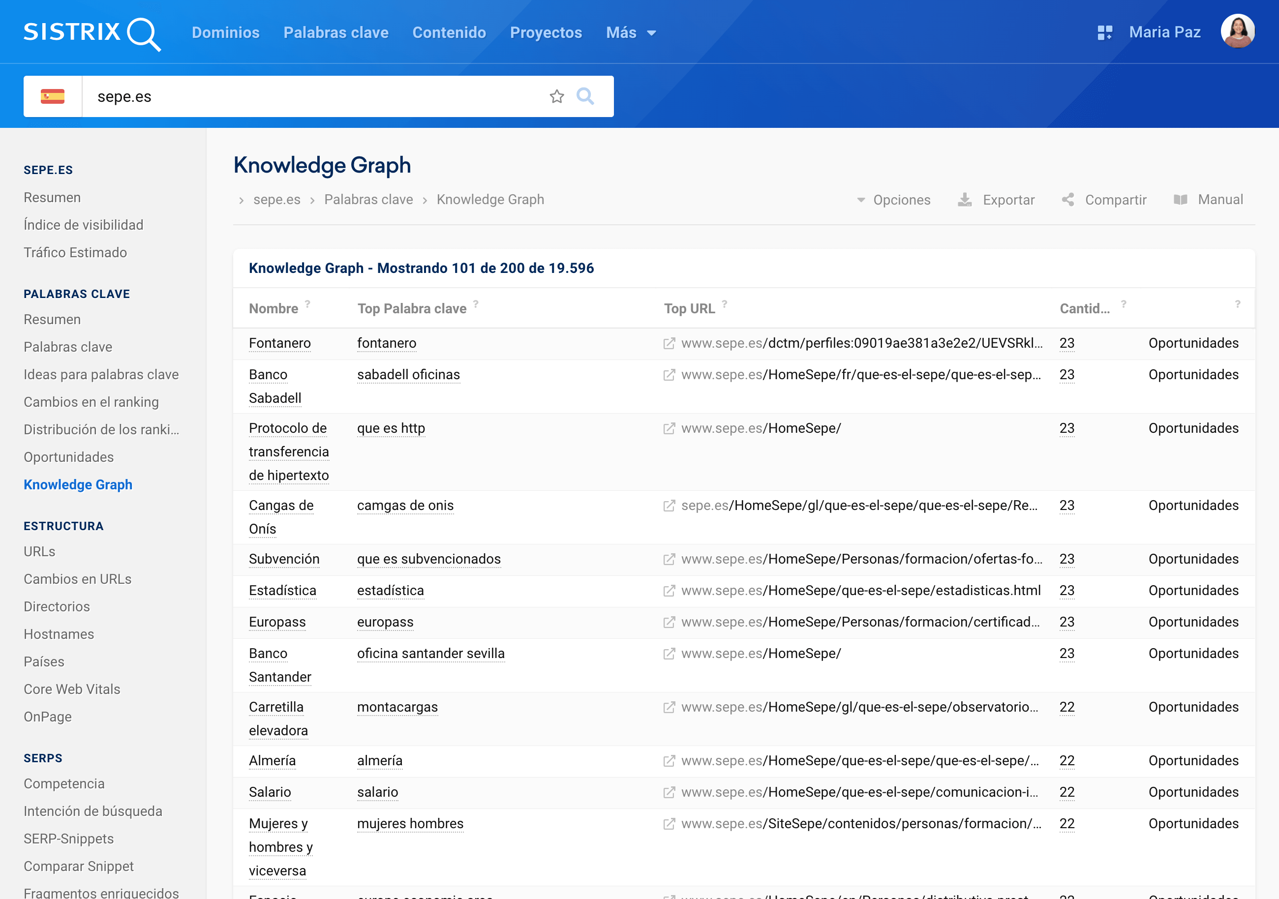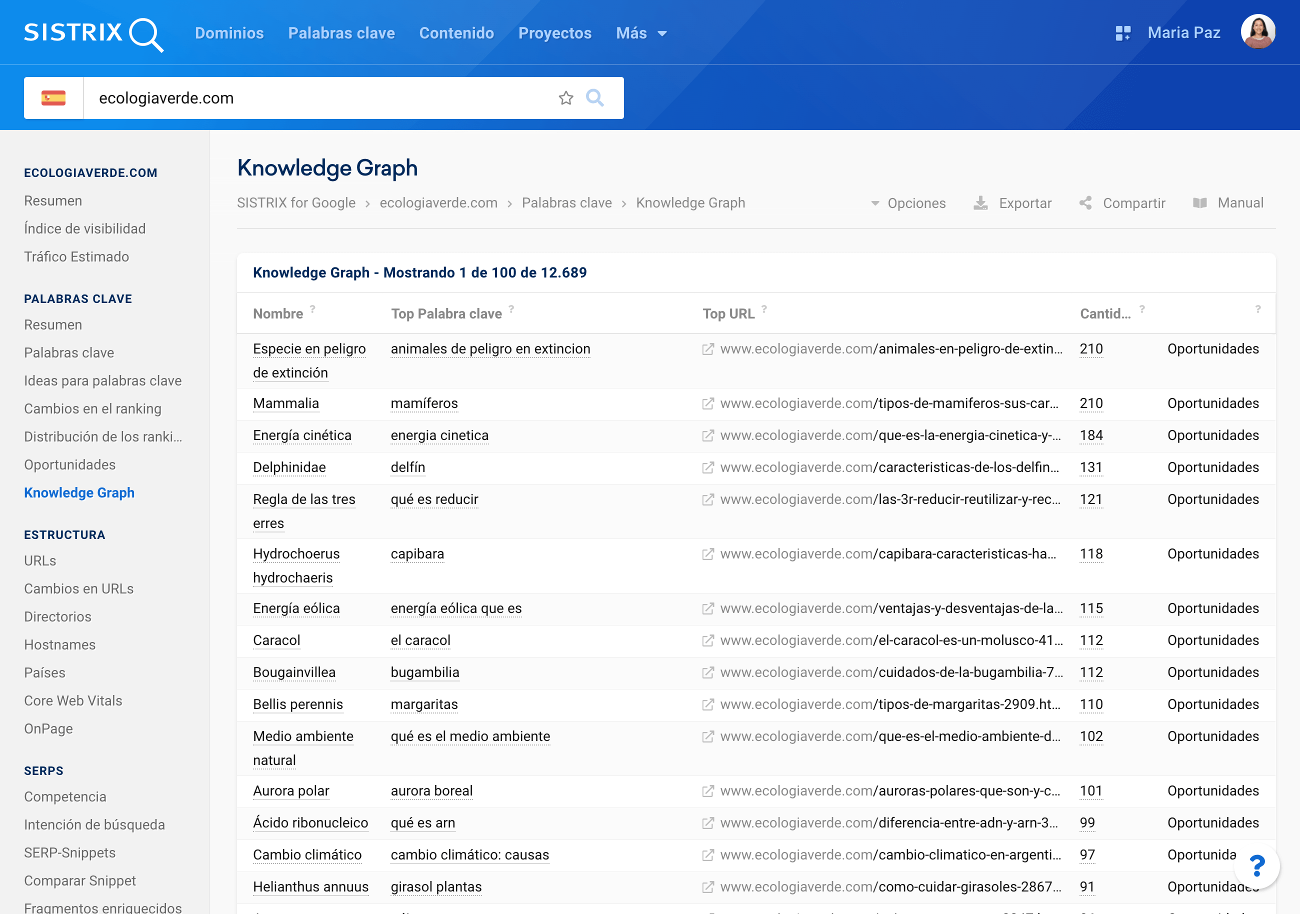 Siguiendo este proceso, SISTRIX te ayudará a analizar y optimizar áreas individuales de tu dominio gracias a los datos de Knowledge Graph.