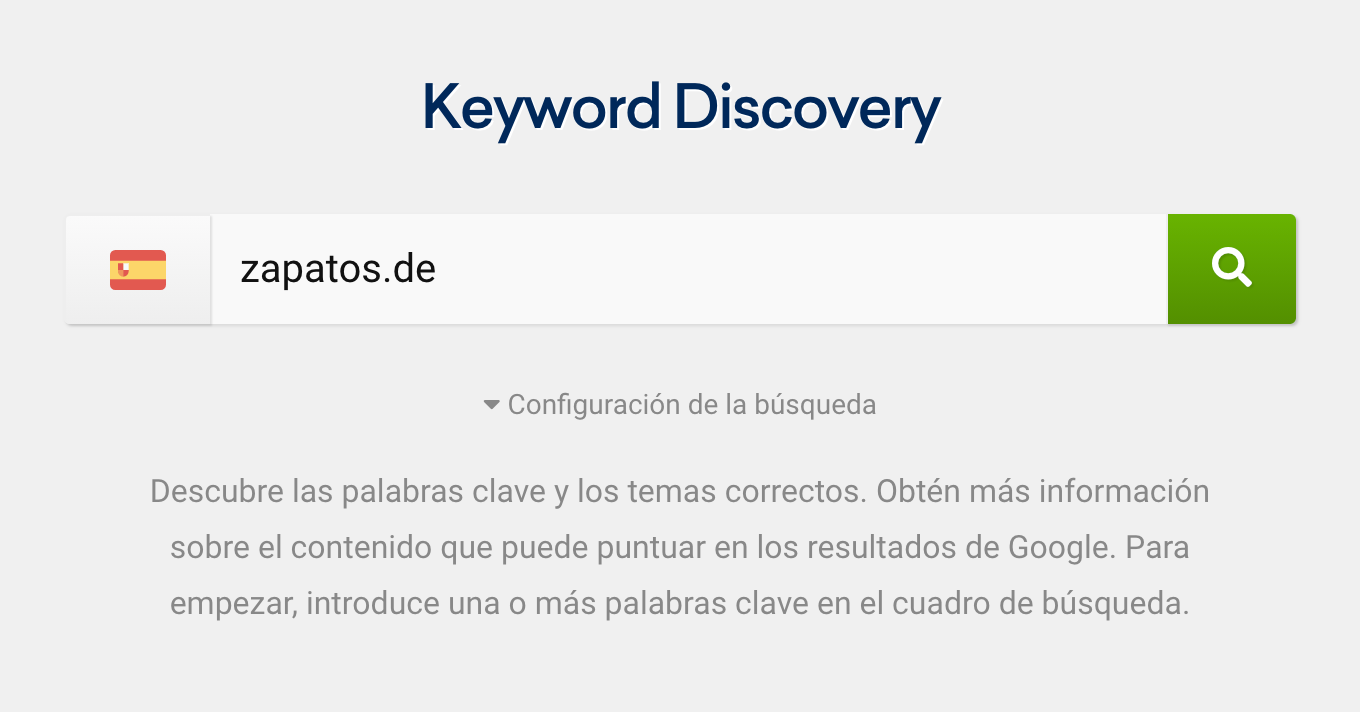 Consejo: La selección de las seed keywords adecuadas es crucial para la calidad de la investigación de palabras clave. Utiliza la herramienta para averiguar qué palabras clave utilizan tus competidores directos exitosamente y empieza por ellas.